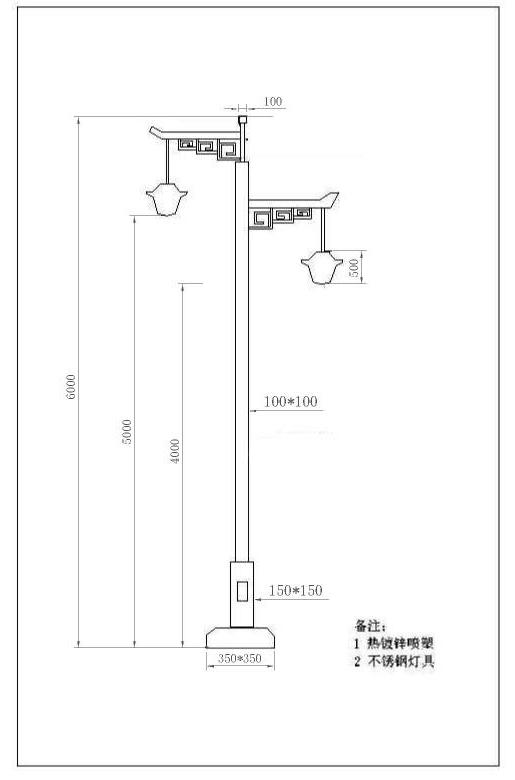 六米仿古灯配置及相关技术参数: