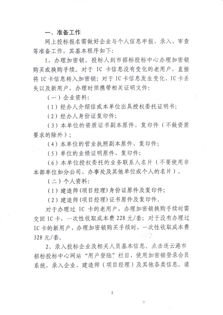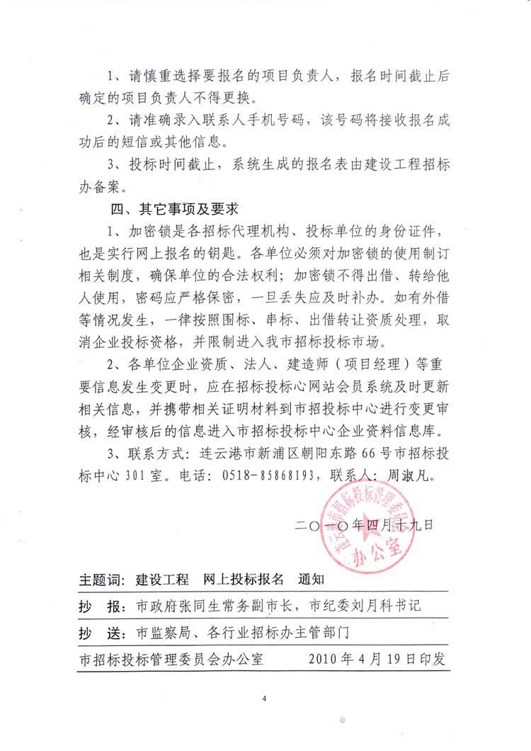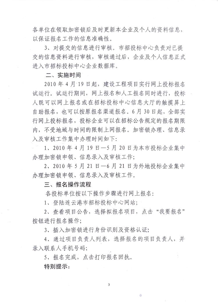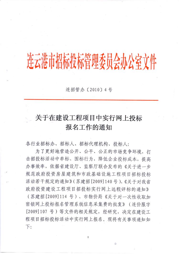 关于在建设工程项目中实行网上投标报名工作的通知 连招管办【2010】4号