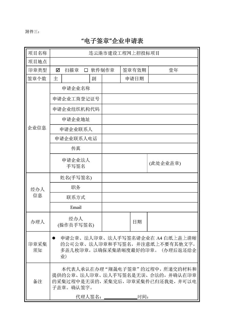 关于办理连云港市建设工程网上招投标企业CA证书(电子签章)手续的通知连建招办【2011】08号