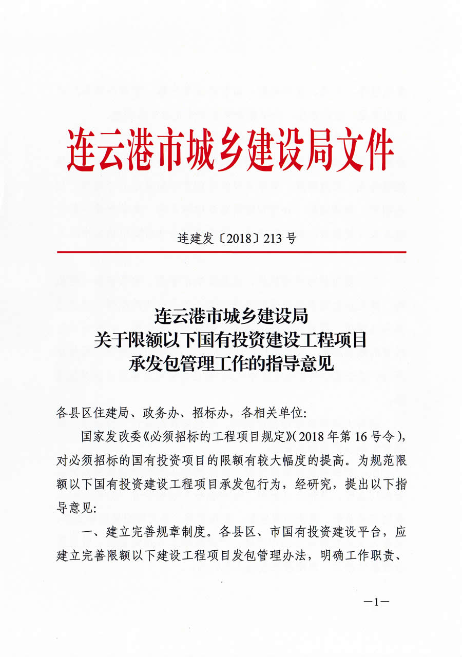 • 连建发[2018]213号关于限额以下国有投资建设工程项目承发包管理工作的指导意见.pdf
