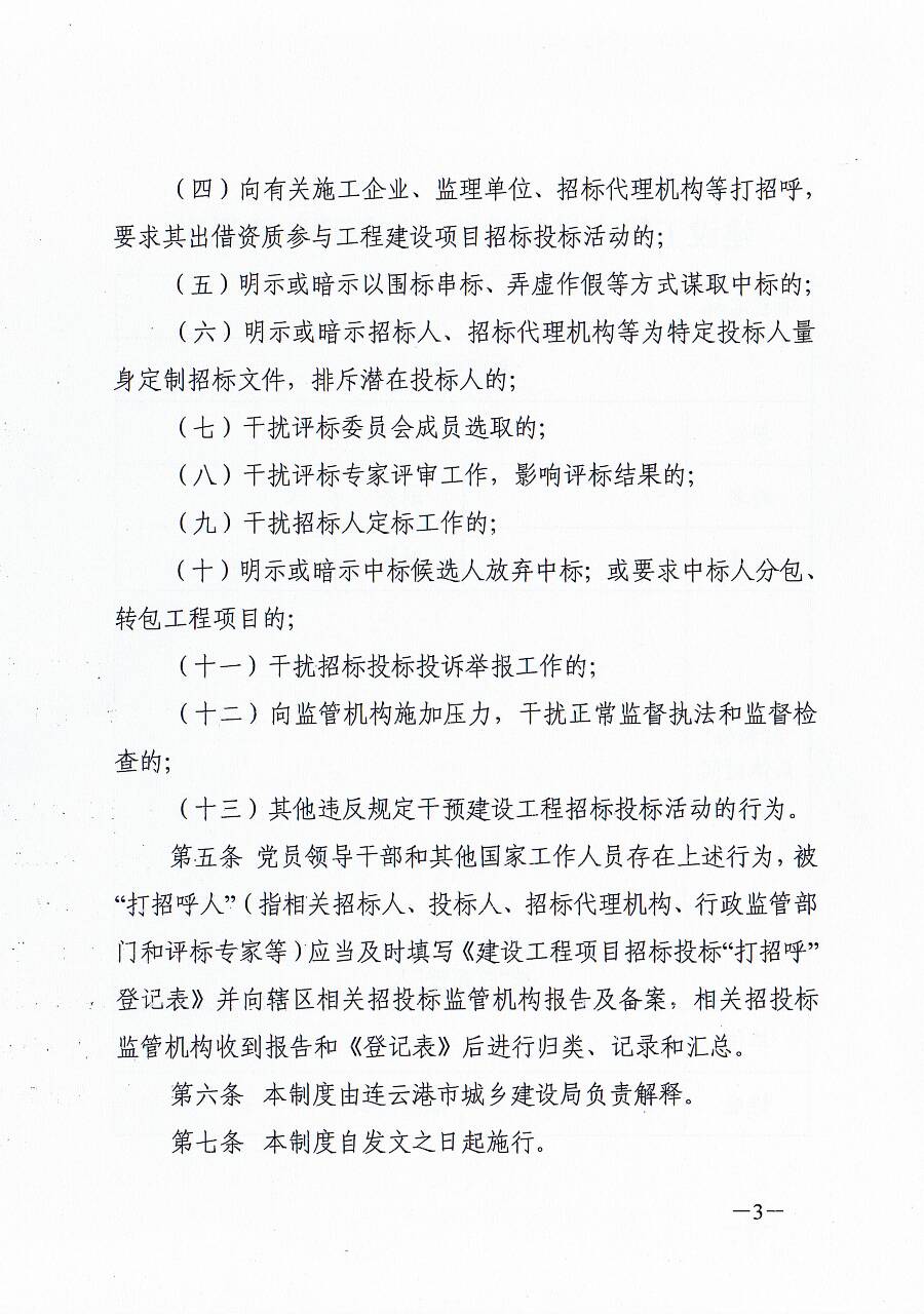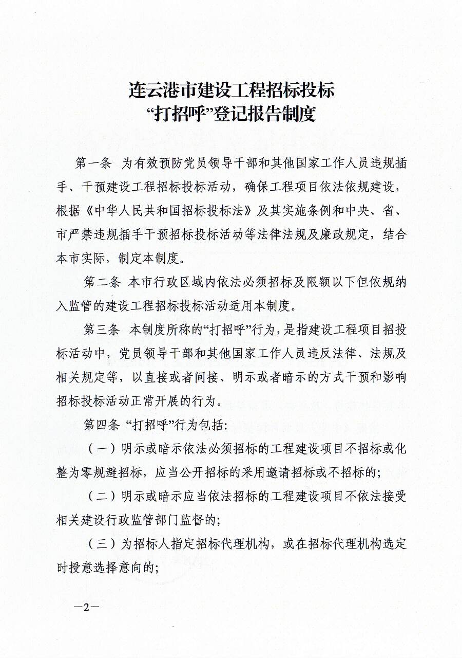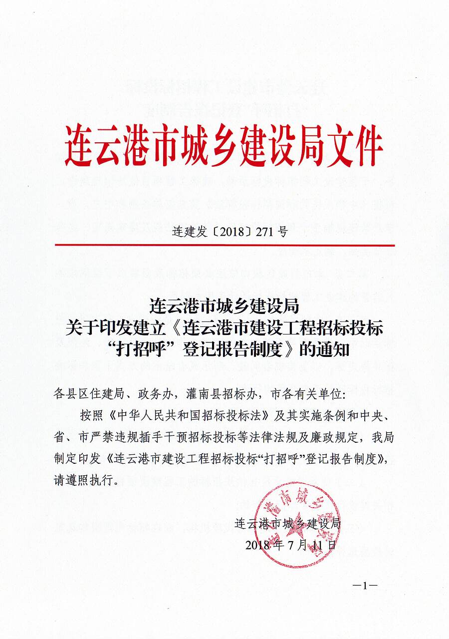 关于印发建立《连云港市建设工程招标投标“打招呼”登记报告制度》的通知 连建发[2018]271号