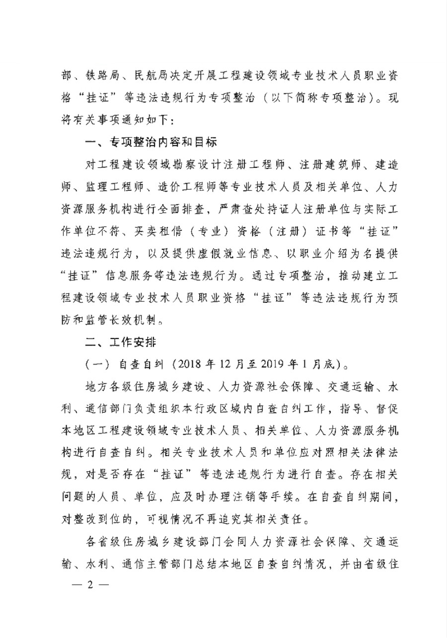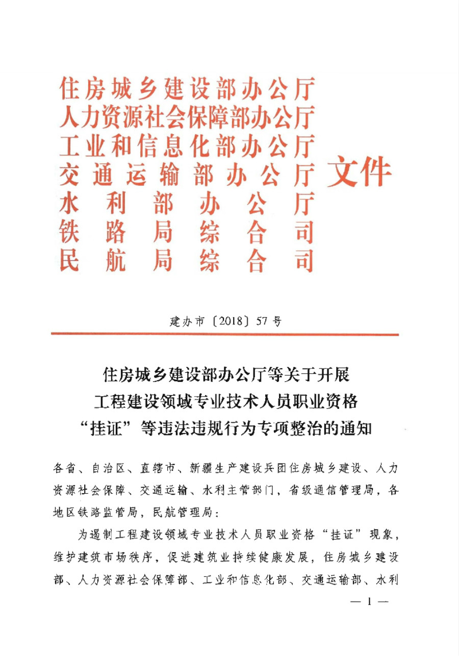 关于转发《住房城乡建设部办公厅等关于开展工程建设领域专业技术人员职业资格“挂证”等违法违规行为专项整治的通知》