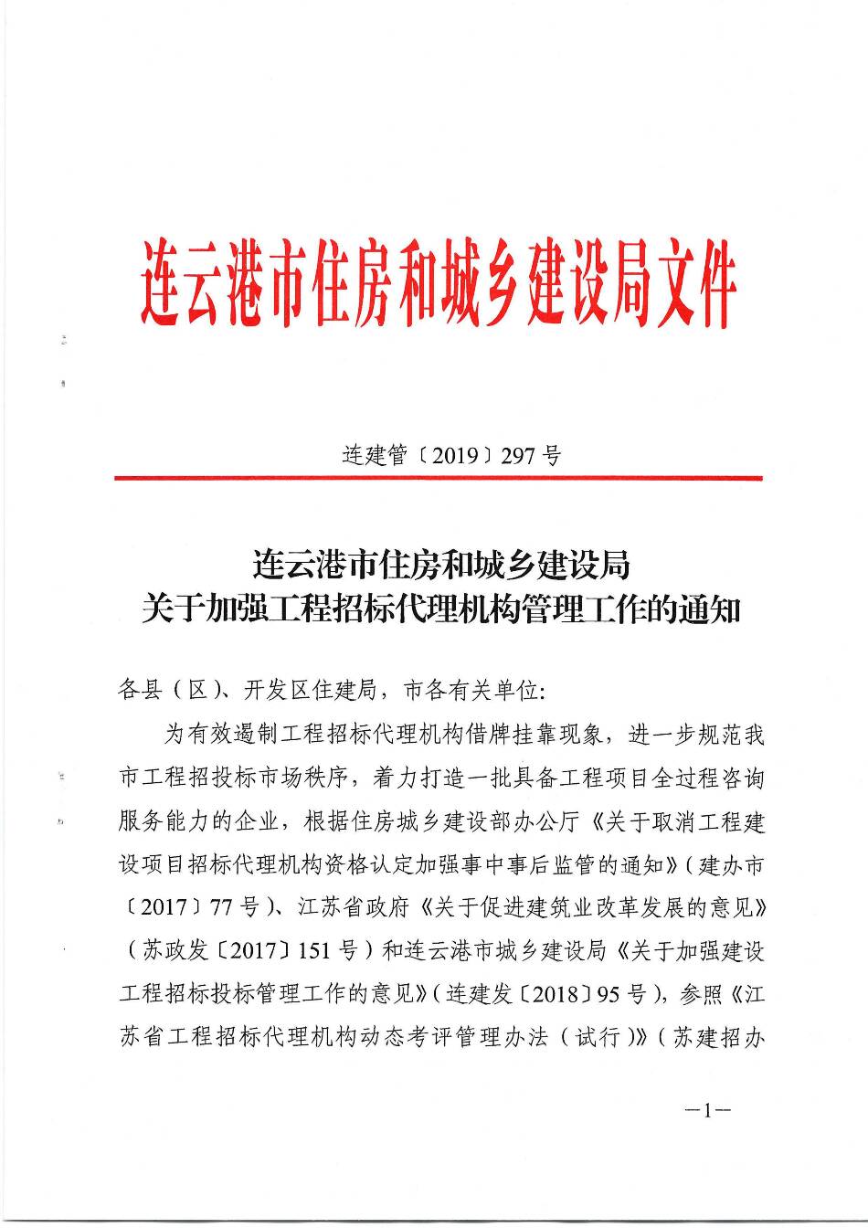 • 连建管[2019]297号市住建局关于加强工程招标代理机构管理工作的通知.pdf
