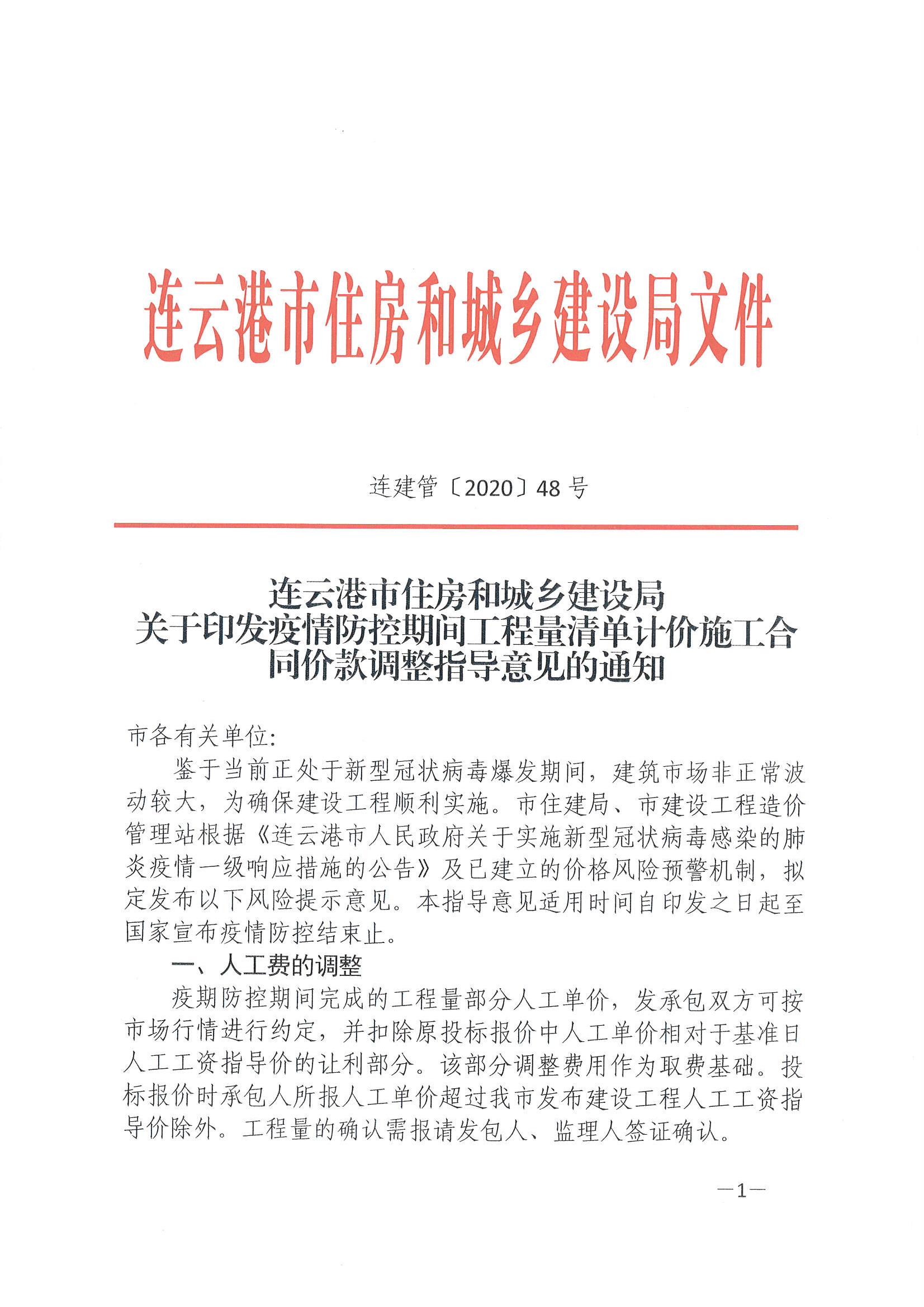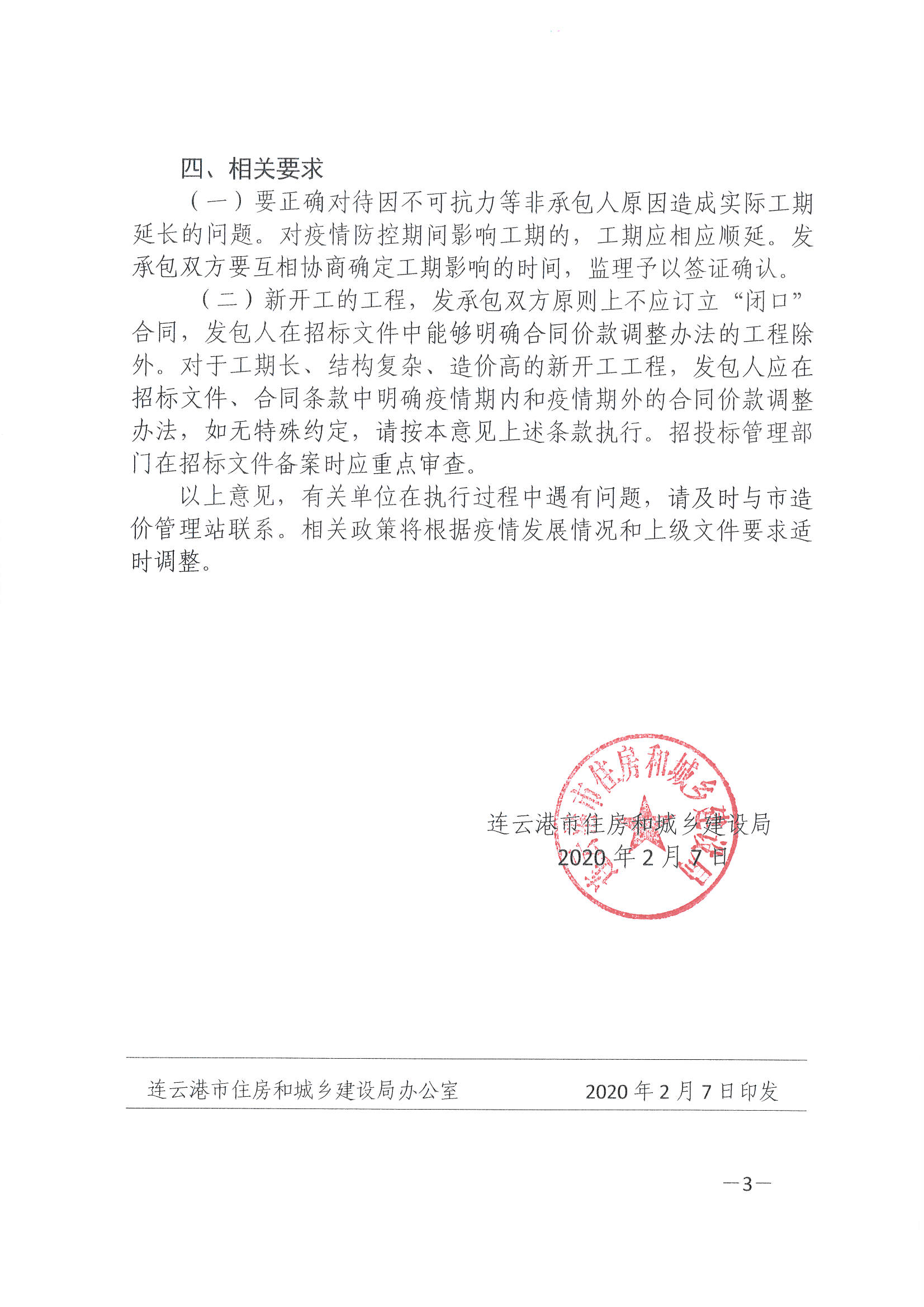 关于印发疫情防控期间工程量清单计价施工合同价款调整指导意见的通知