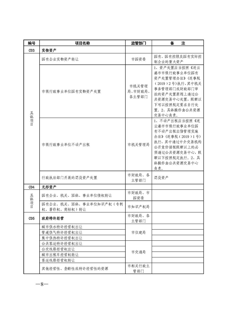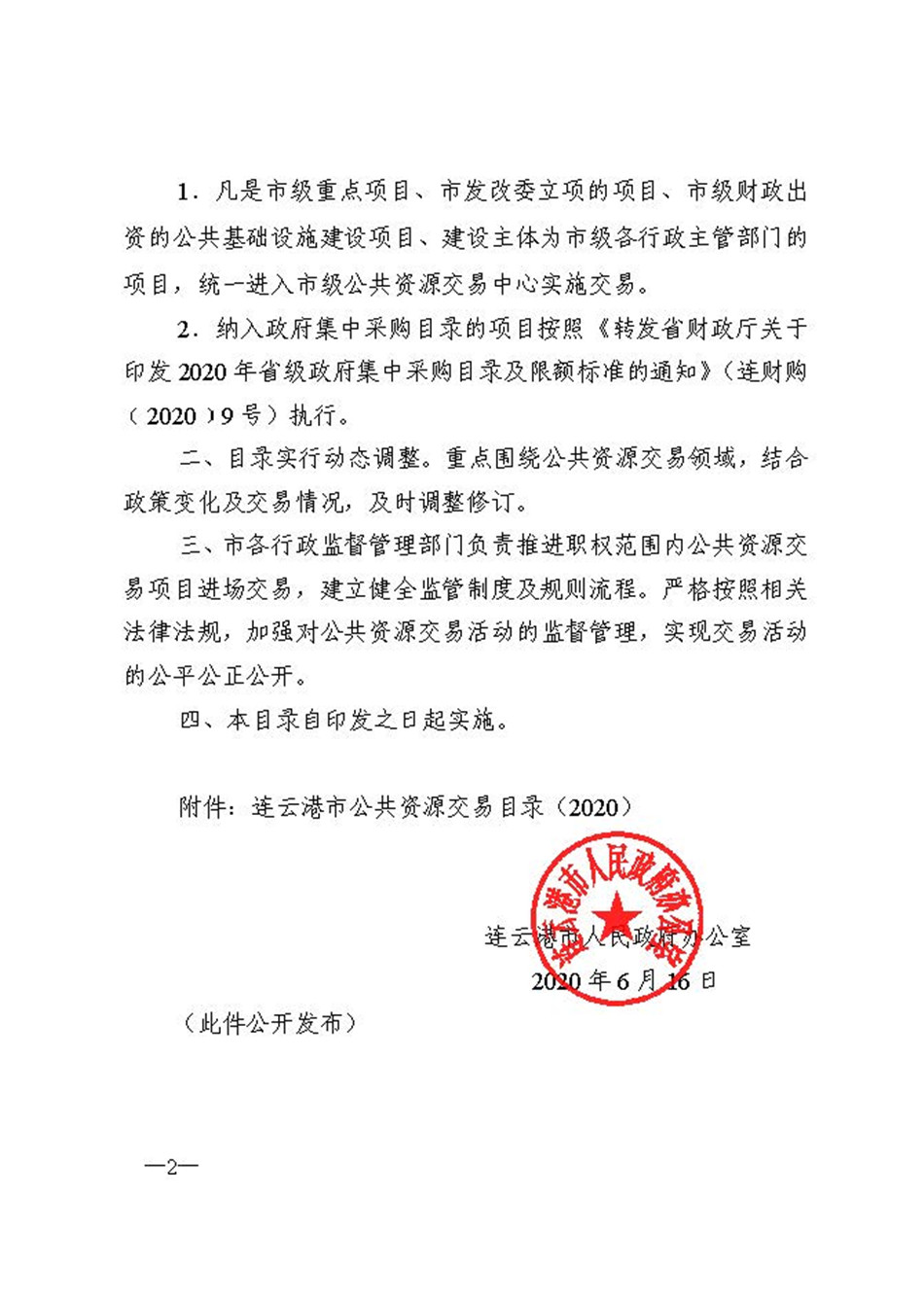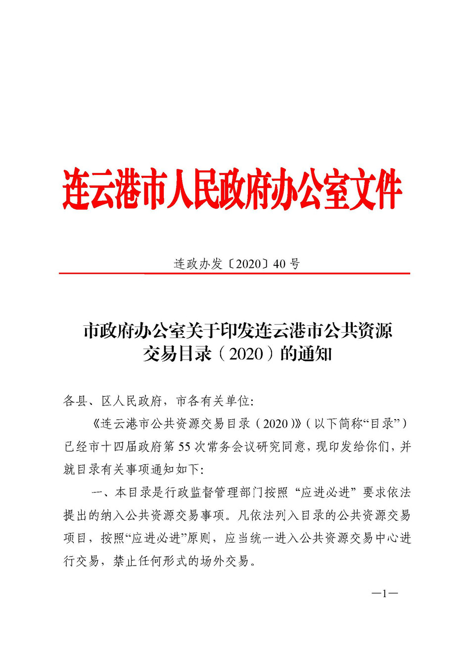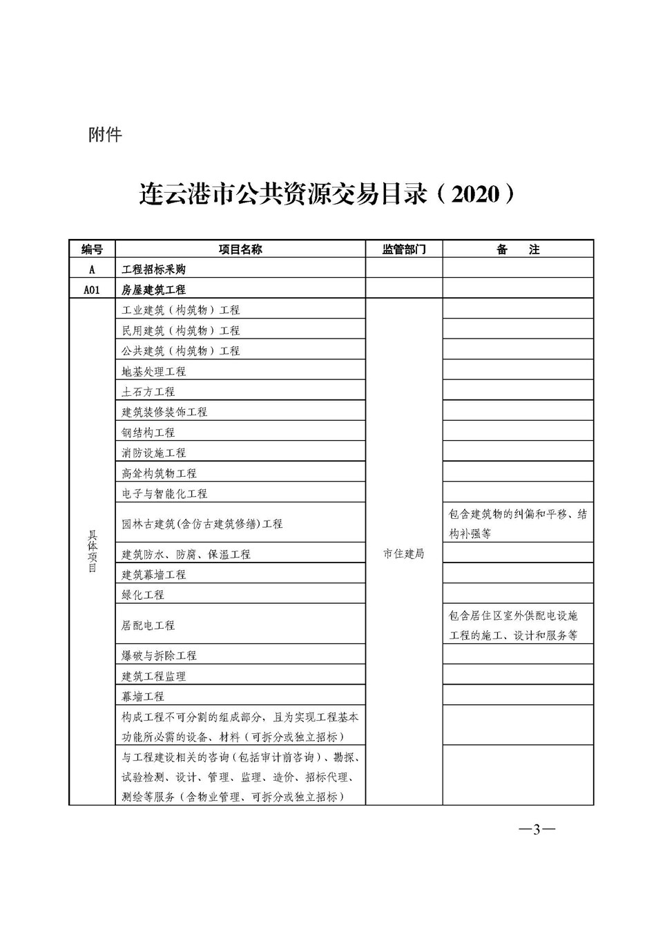 市政府办公室关于印发连云港市公共资源交易目录(2020)的通知