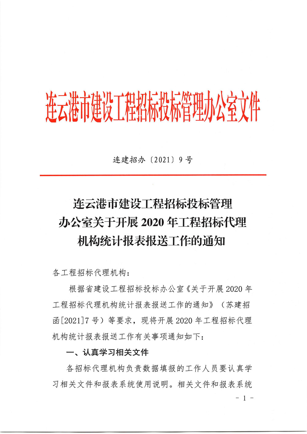关于开展2020年工程招标代理机构统计报表报送工作的通知