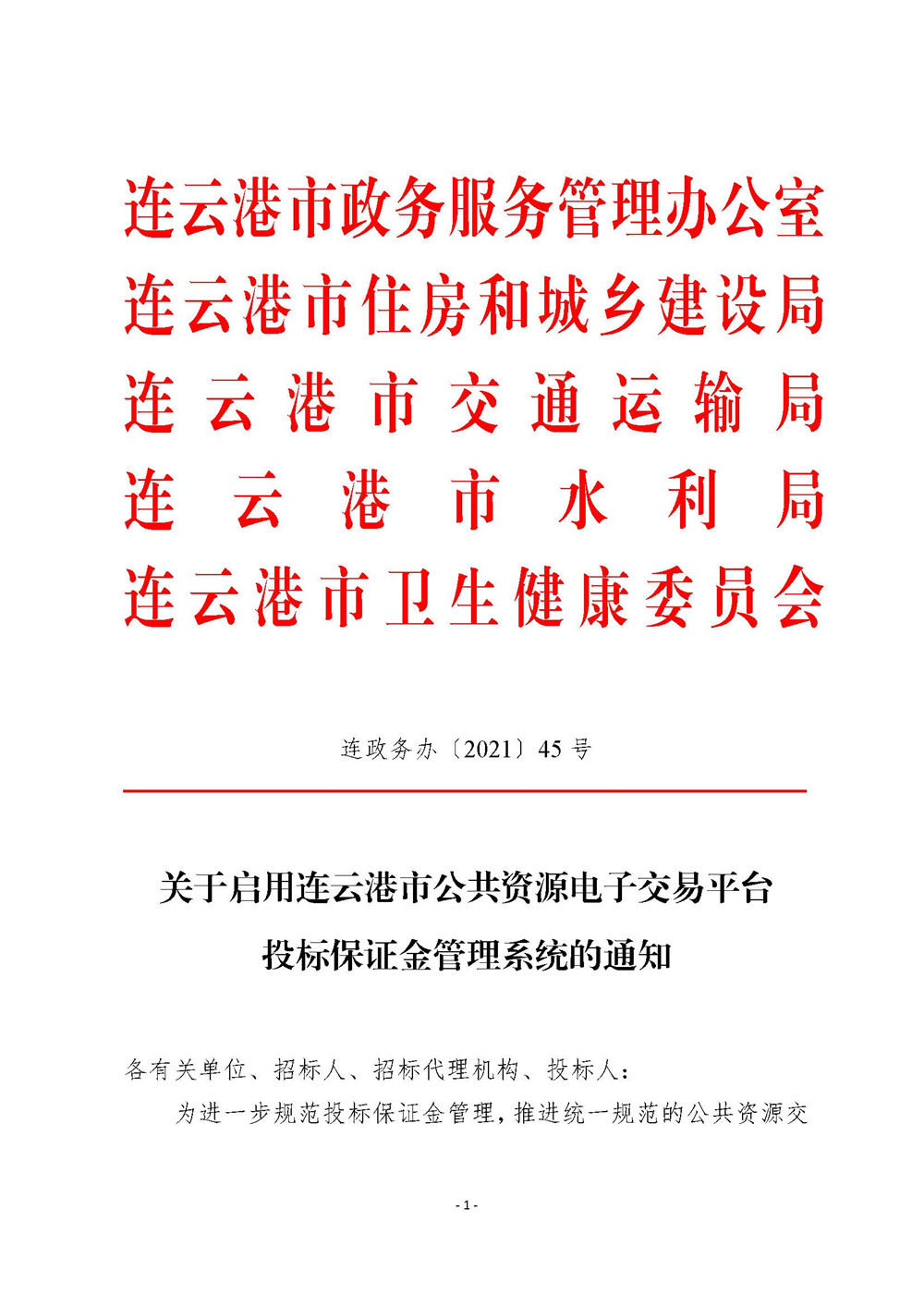 连政务办〔2021〕45号 关于启用连云港市公共资源电子交易平台投标保证金管理系统的通知.pdf