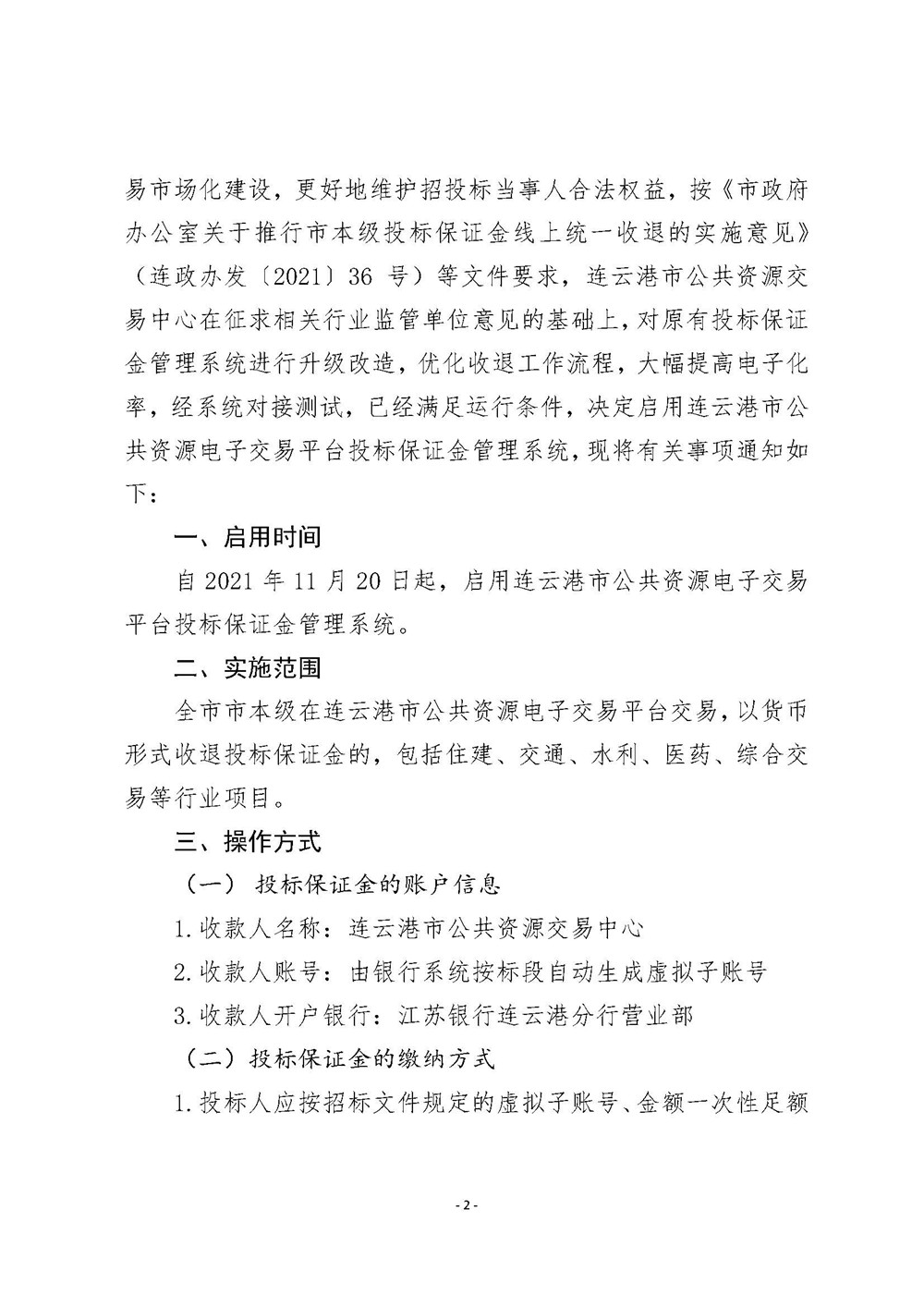 关于启用连云港市公共资源电子交易平台投标保证金管理系统的通知