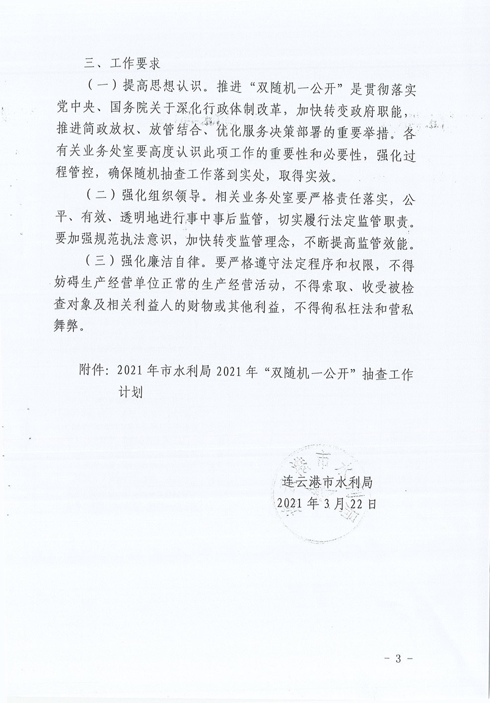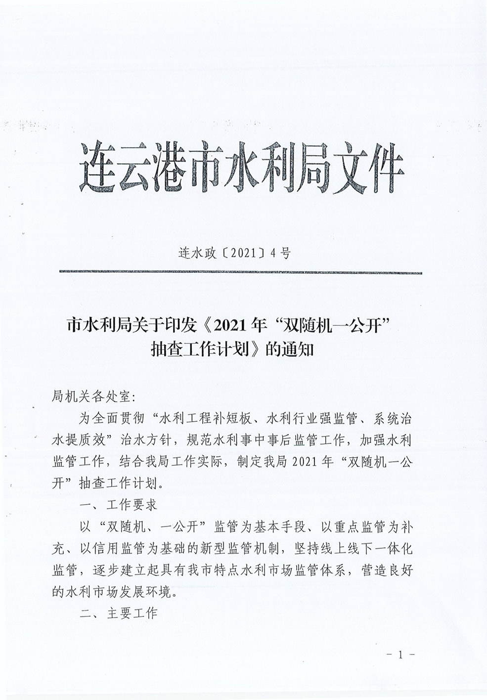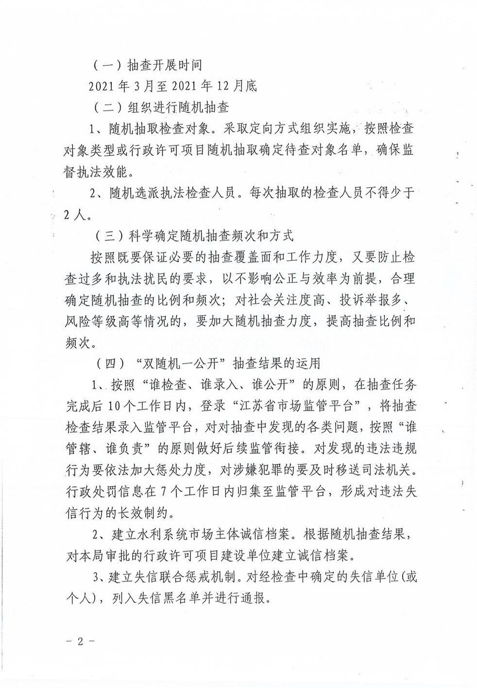 市水利局关于印发《2021年“双随机、一公开”抽查工作计划》的通知