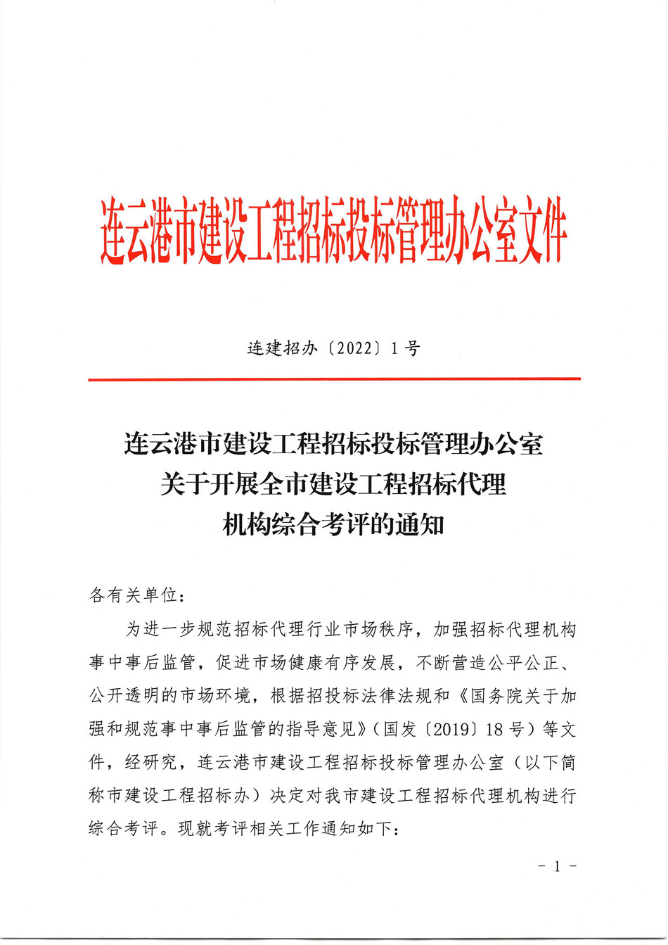 关于开展全市建设工程招标代理机构综合考评的通知