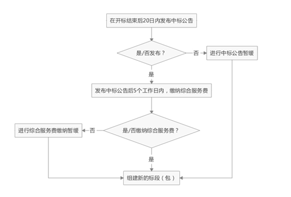 2、请在发布中标公告5个工作日内完成综合服务费缴费结算工作,逾期则无法组建新的标段(包),如有特殊情况请联系公共资源交易中心收费人员进行暂缓。