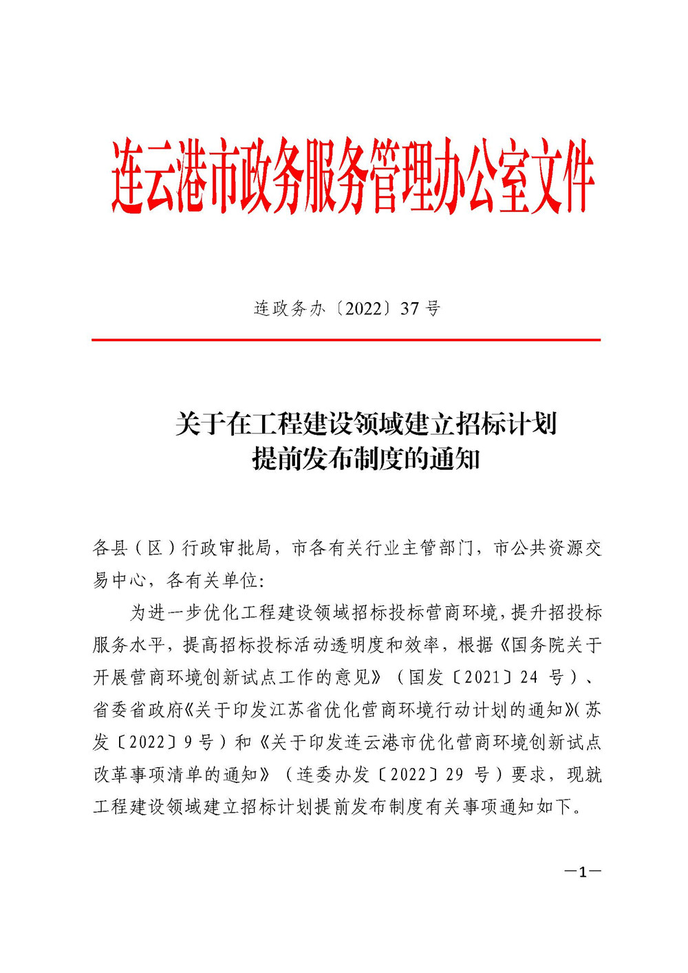 《关于在工程建设领域建立招标计划提前发布制度的通知》(连政办发〔2022〕37号).pdf