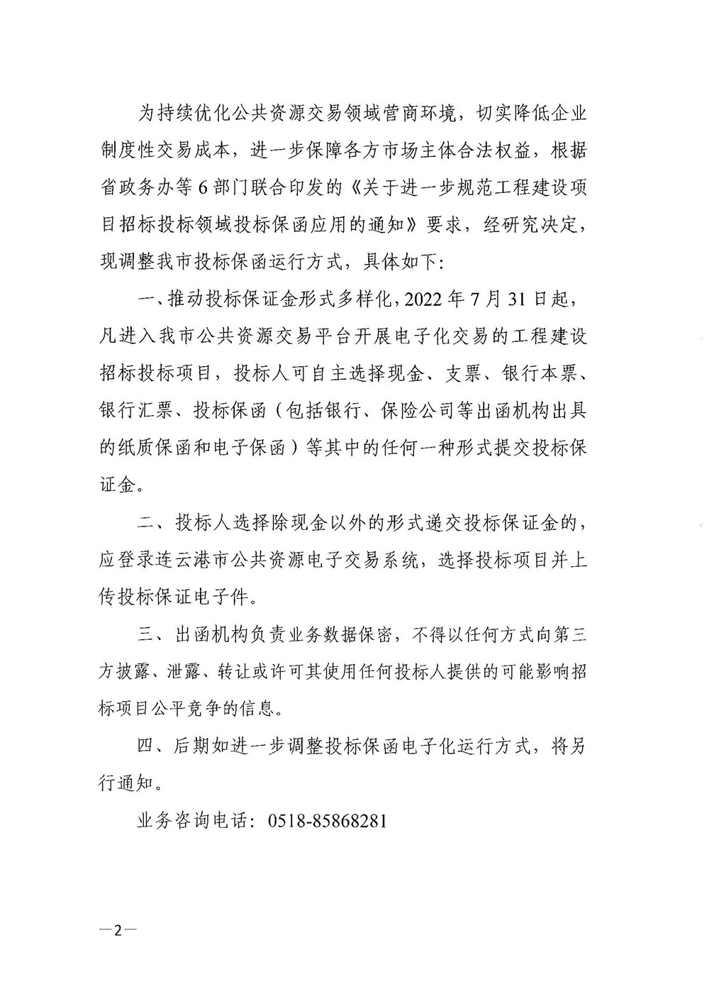 关于调整我市工程建设项目招投标领域投标保函运行方式的通知.pdf