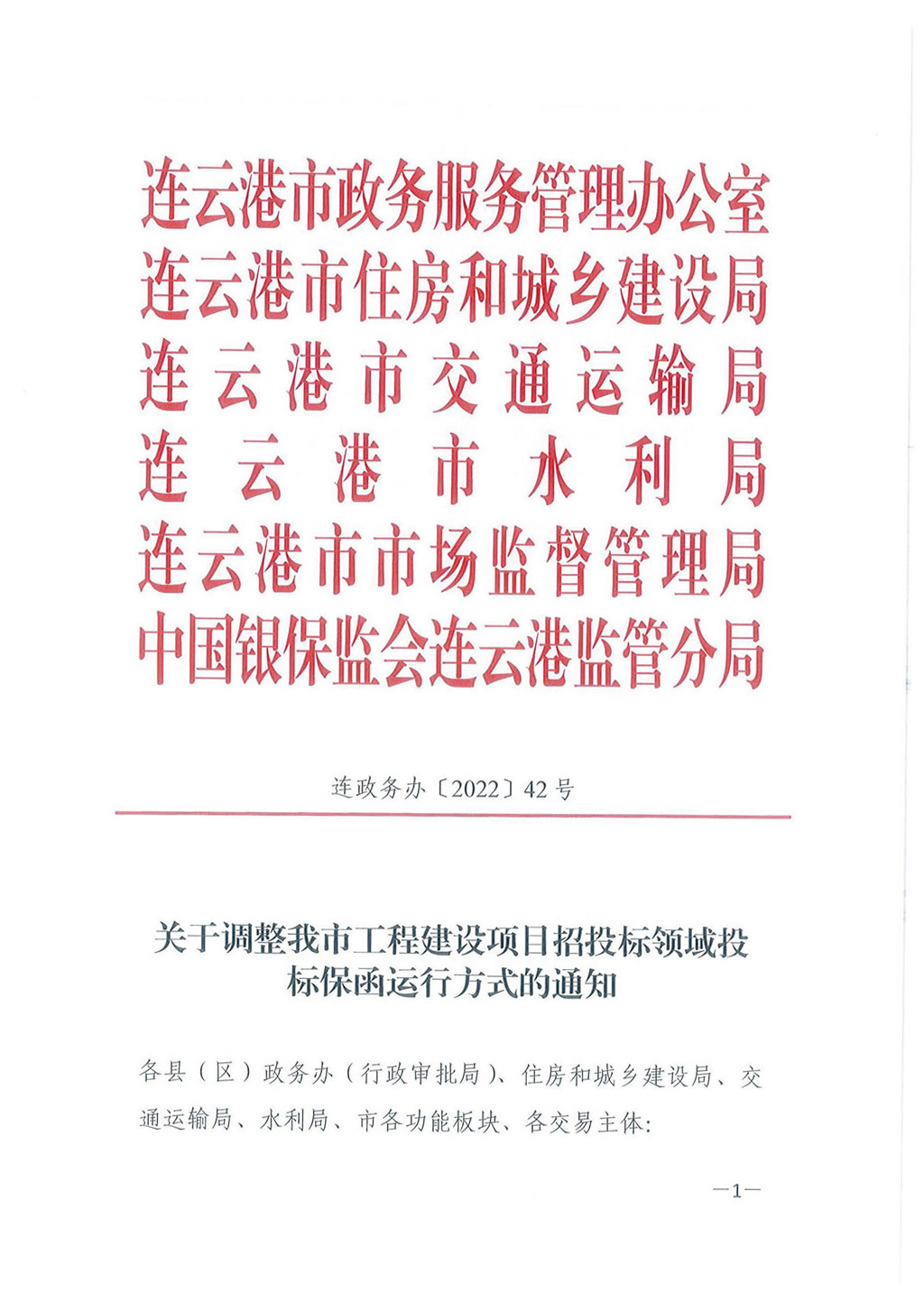 关于调整我市工程建设项目招投标领域投标保函运行方式的通知