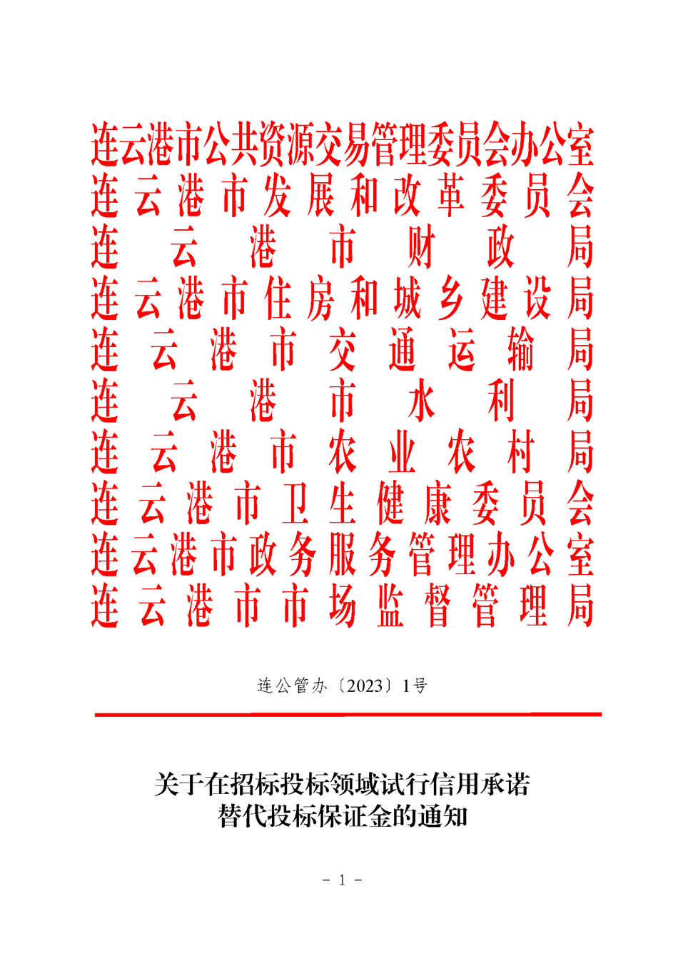 • 连公管办〔2023〕1号关于在招标投标领域试行信用承诺替代投标保证金的通知.pdf