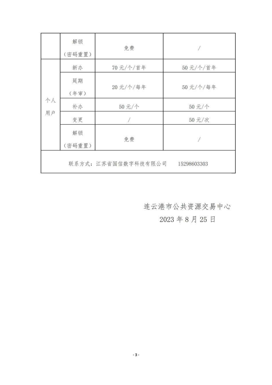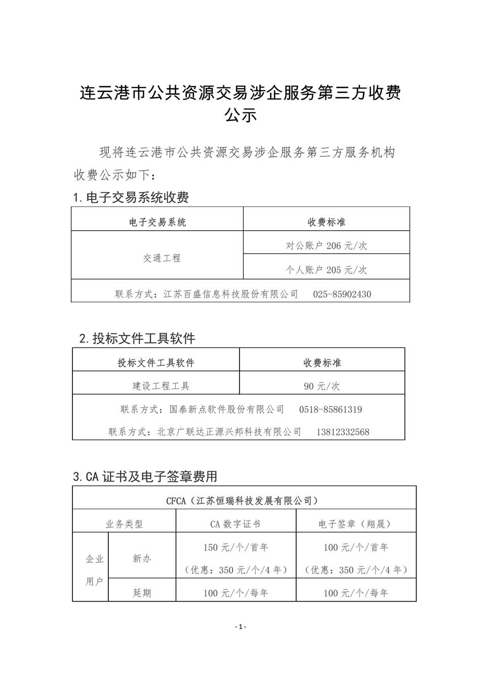 连云港市公共资源交易涉企服务第三方收费公示