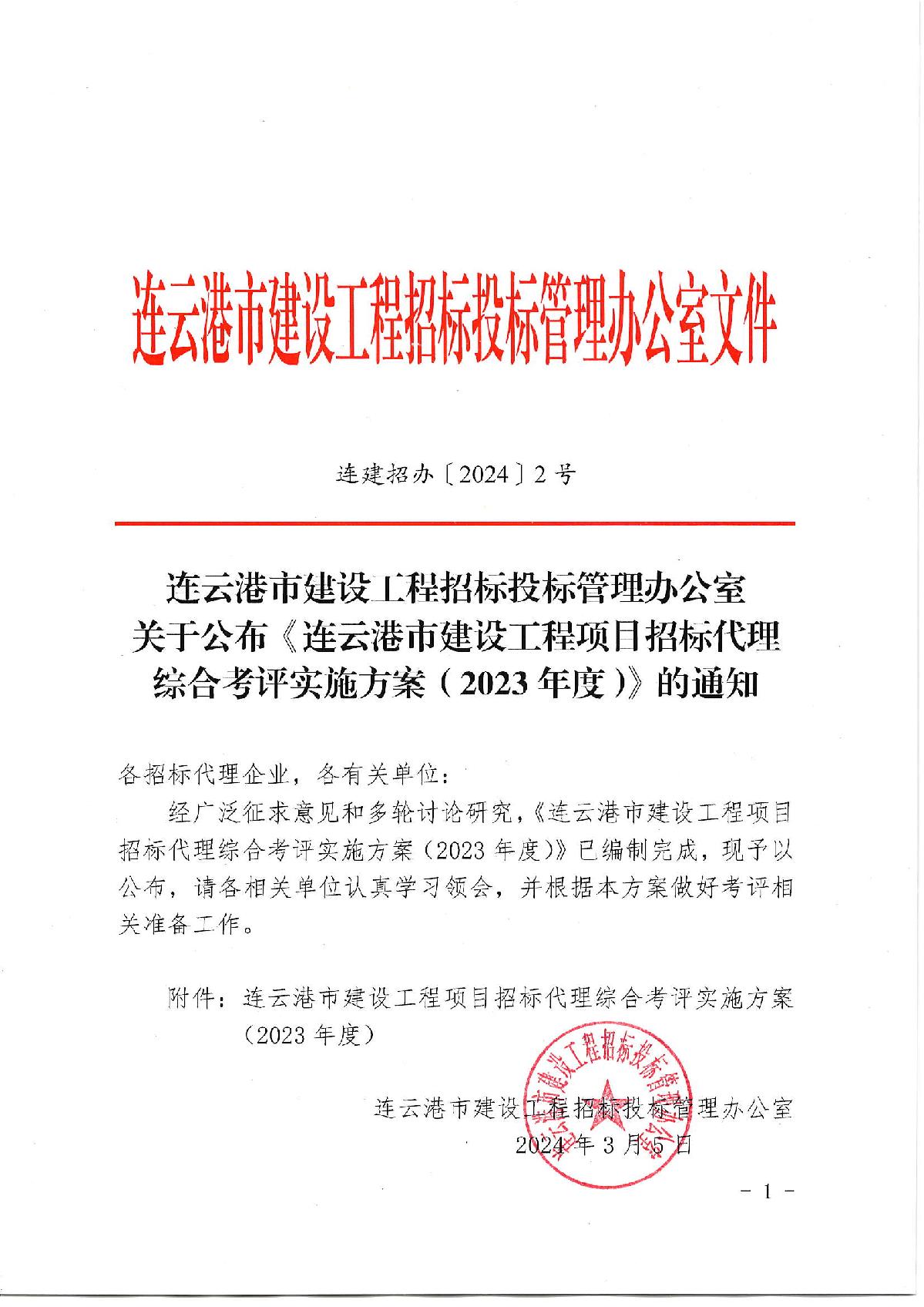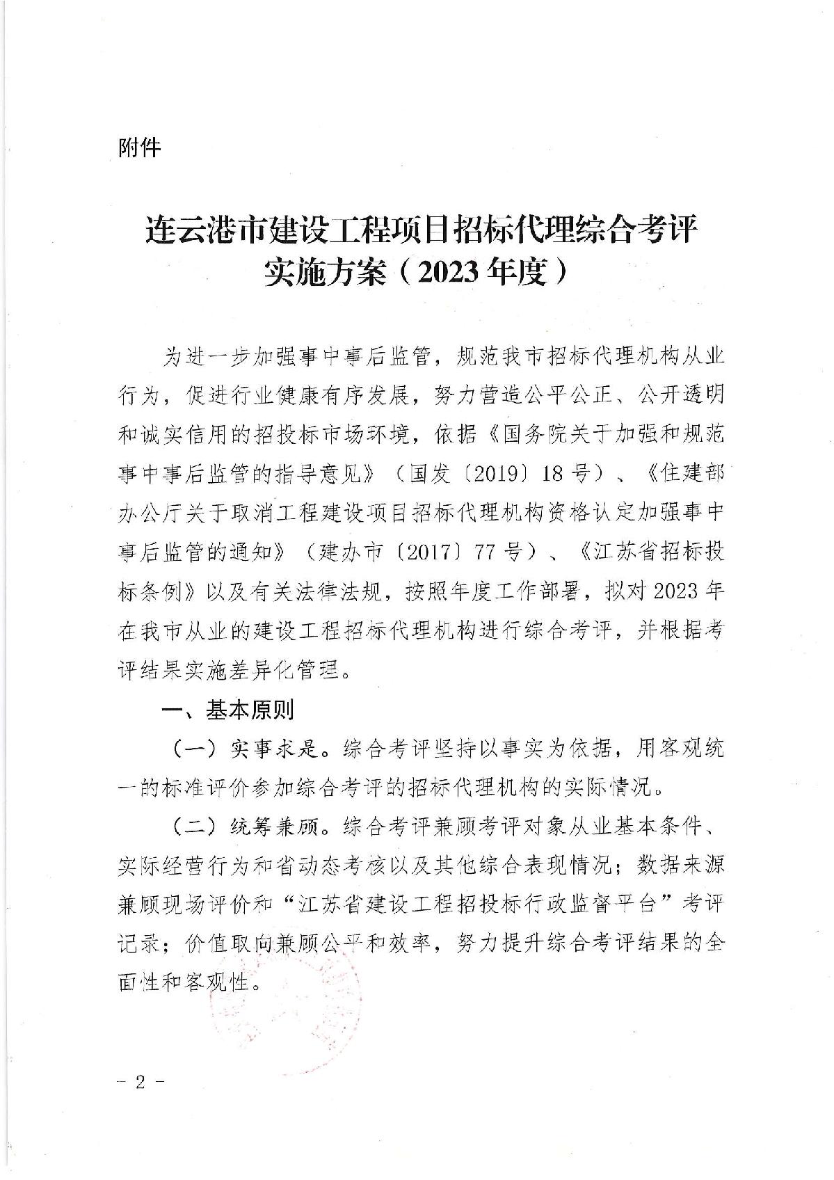 关于公布《连云港市建设工程项目招标代理综合考评实施方案(2023年度)》的通知