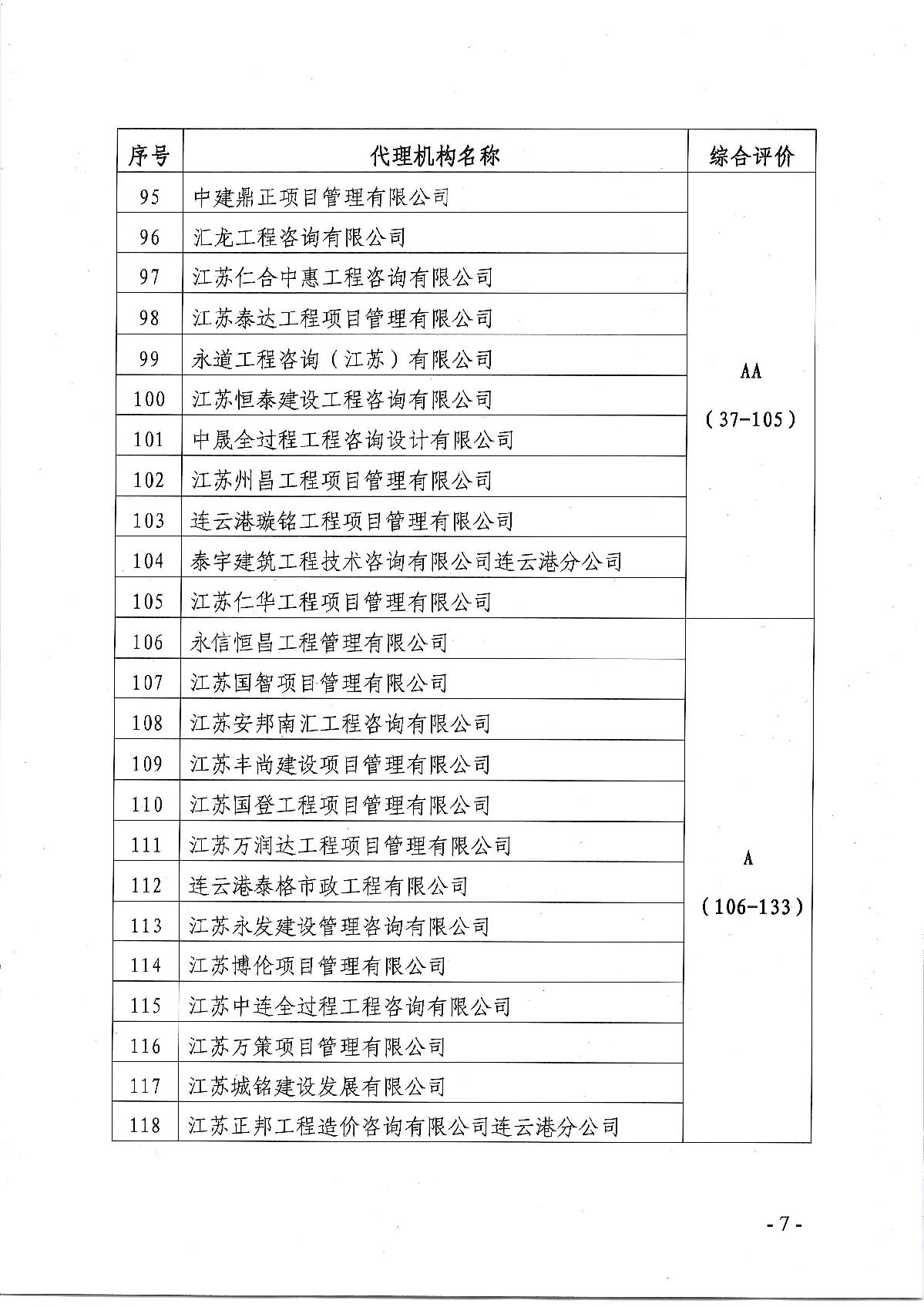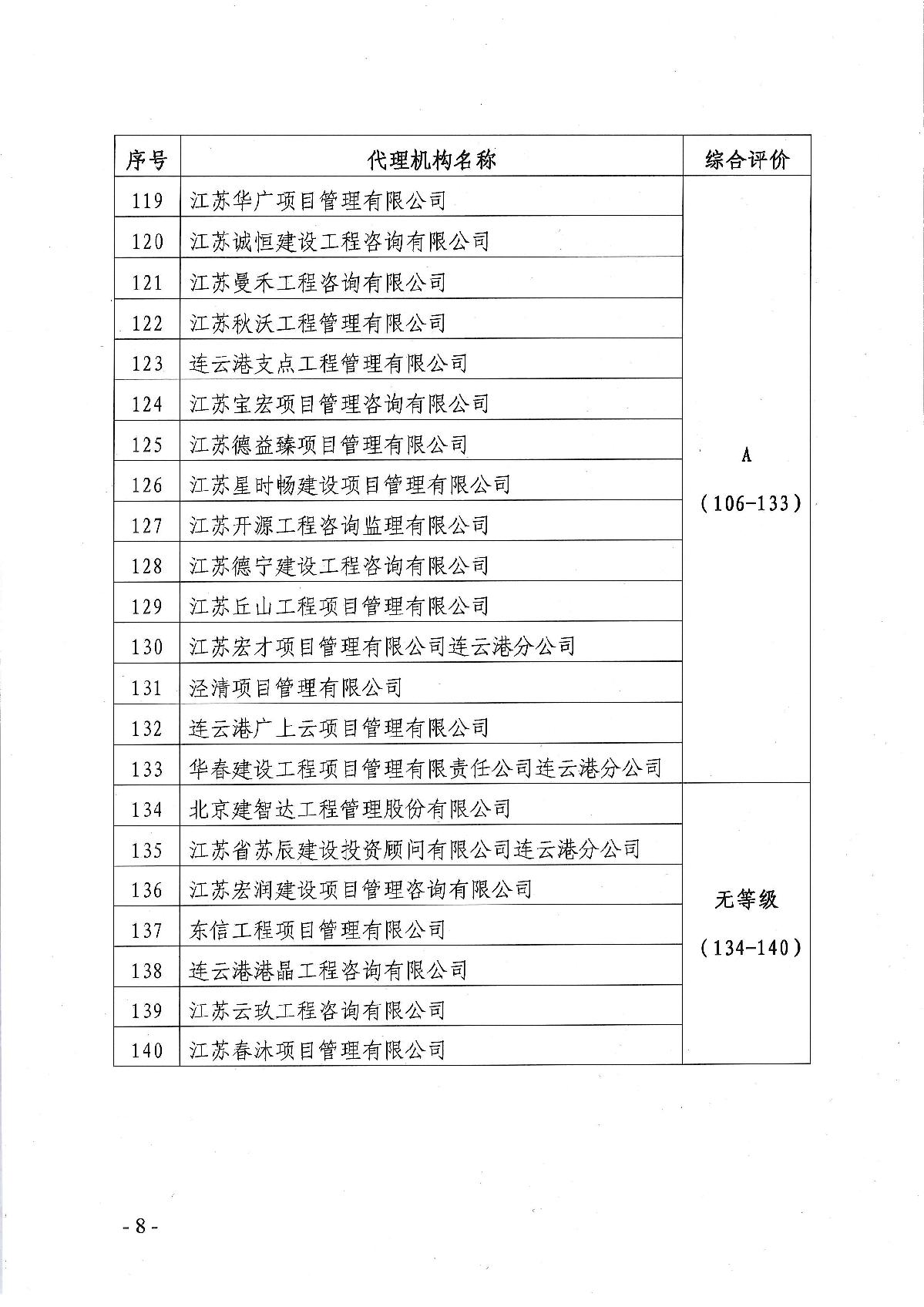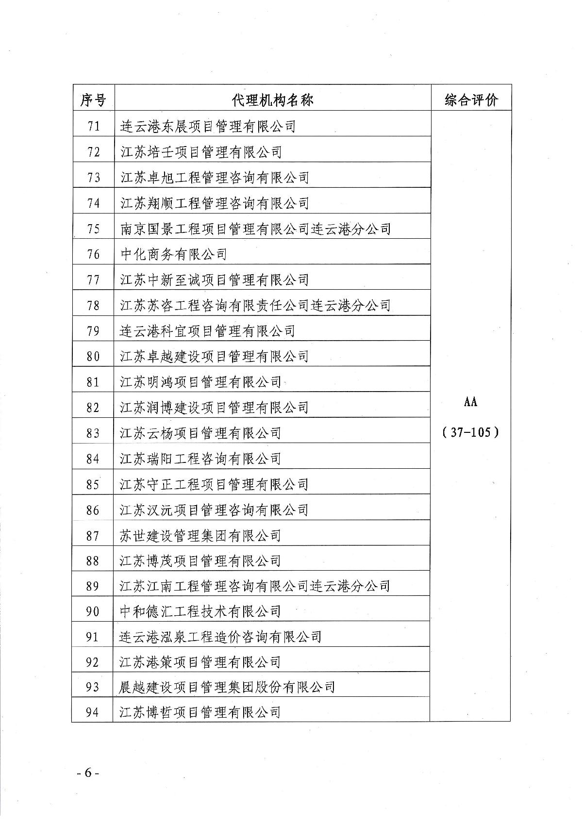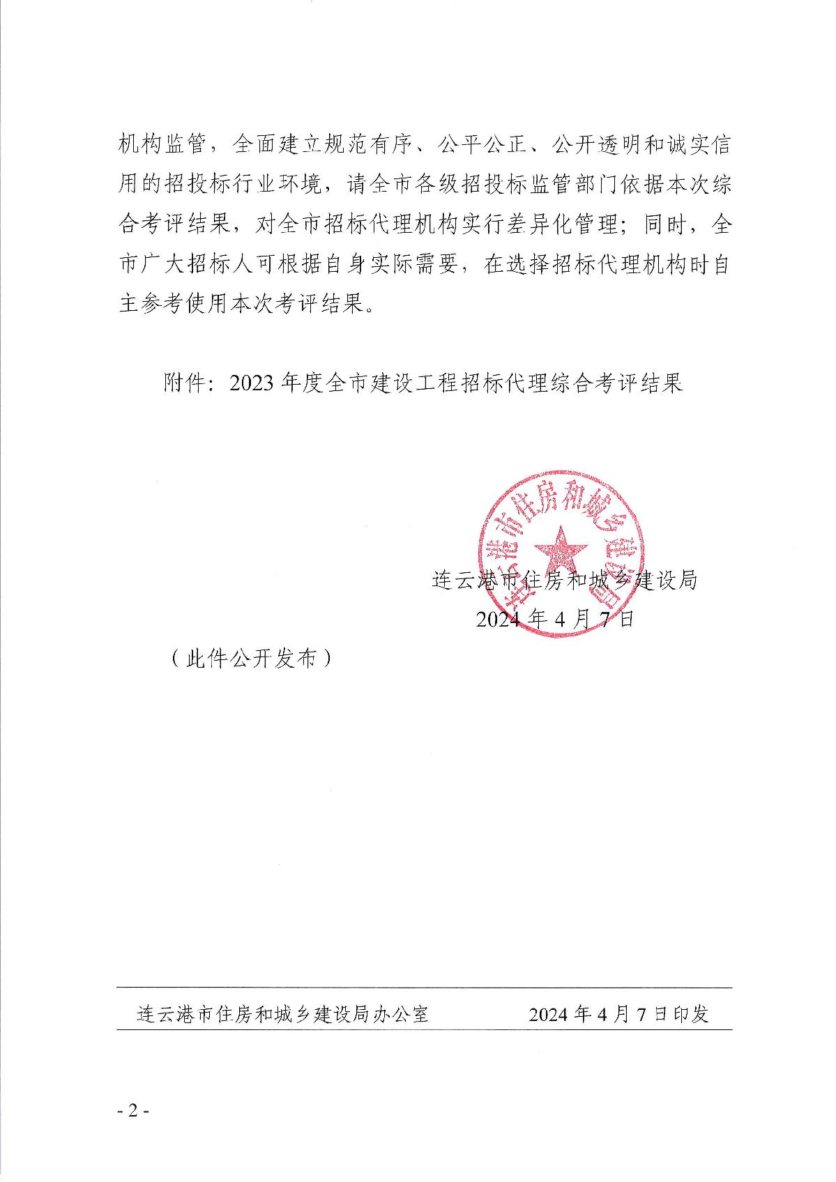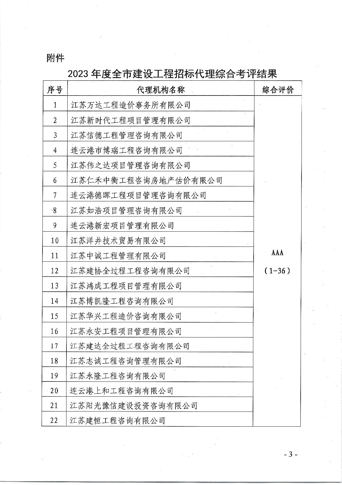 关于公布连云港市2023年度建设工程招标代理综合考评结果的通知
