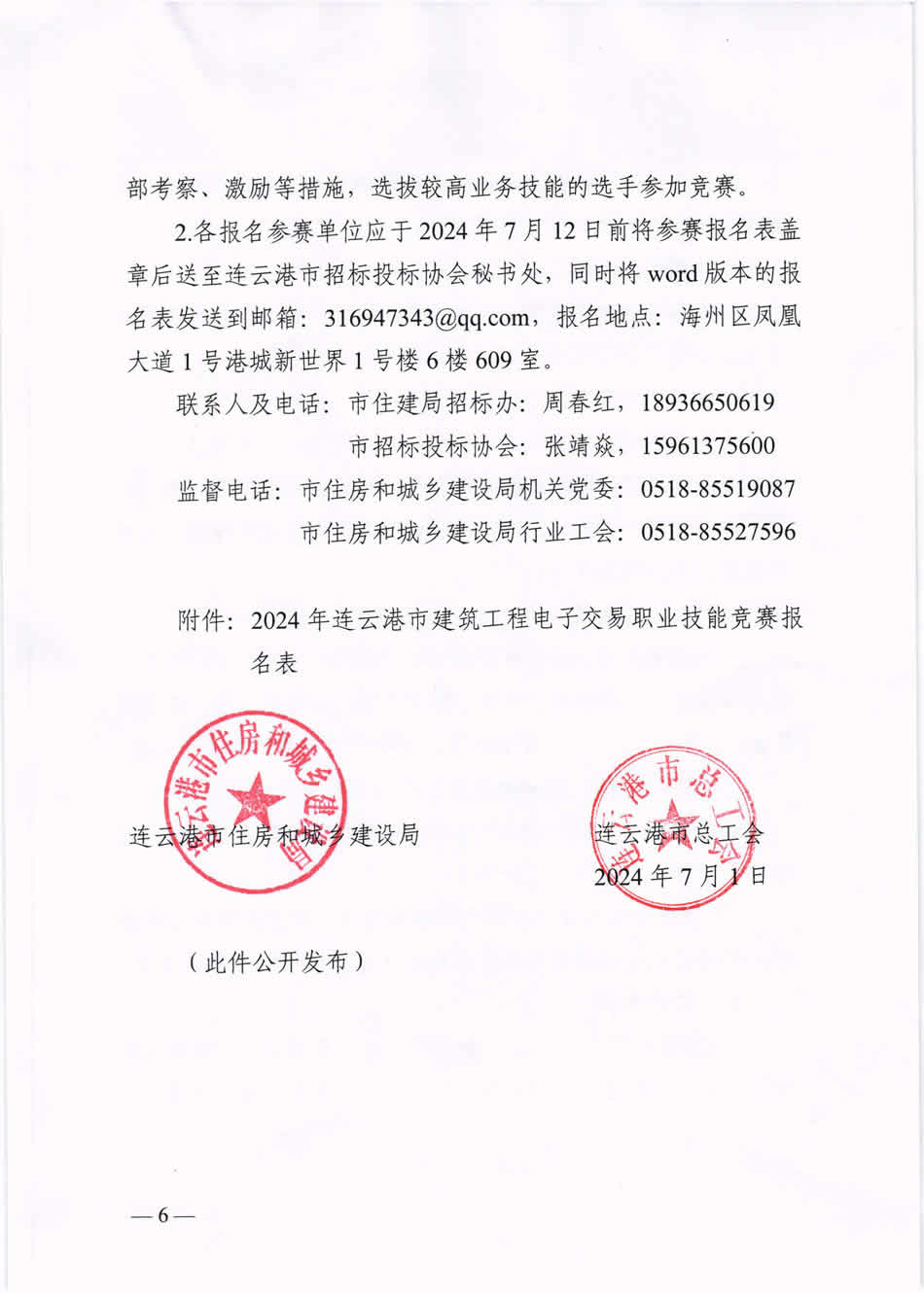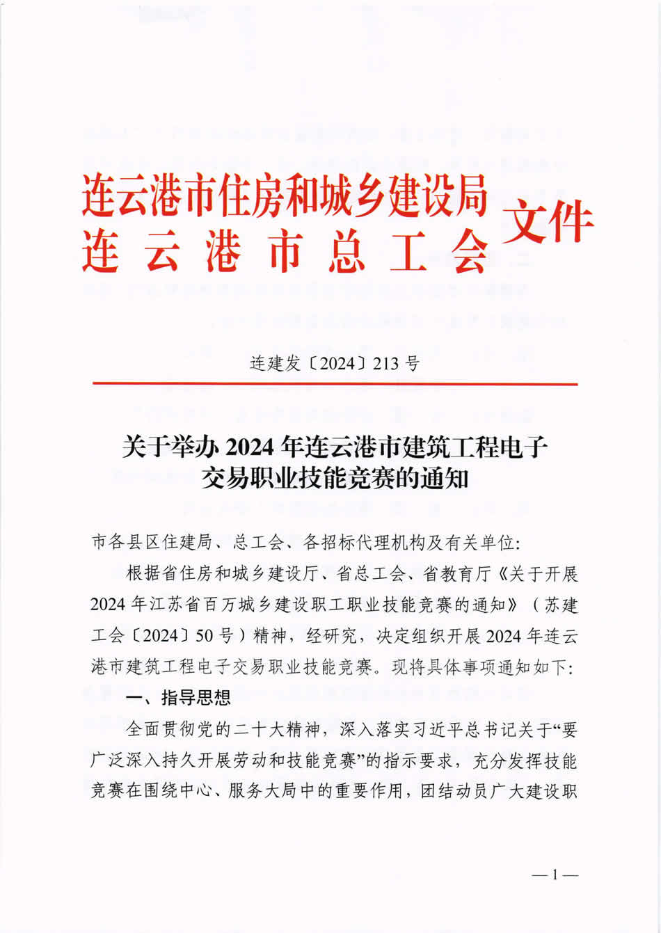 连建发〔2024〕213号(关于举办2024年连云港市建筑工程电子交易职业技能竞赛的通知)(1).doc