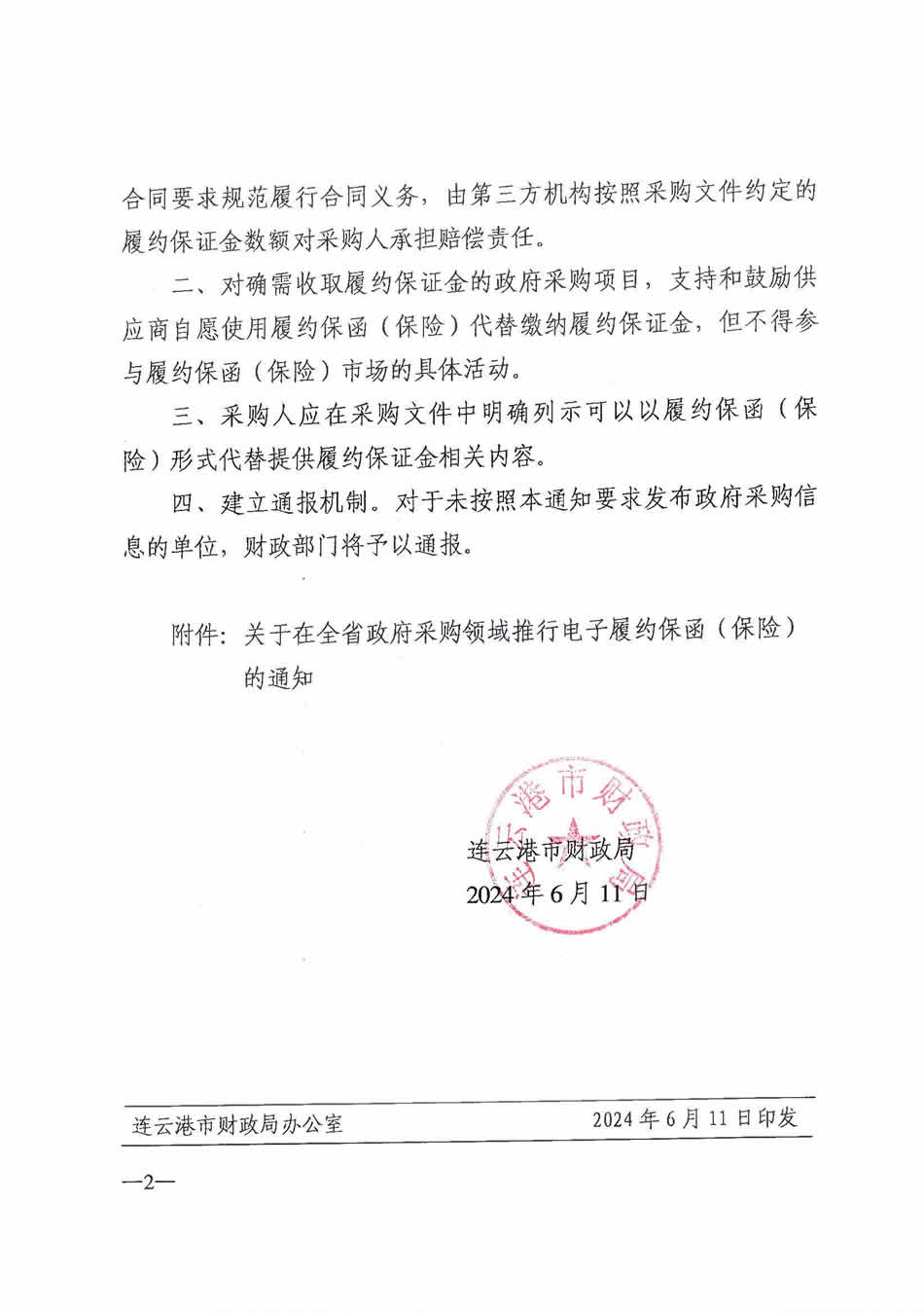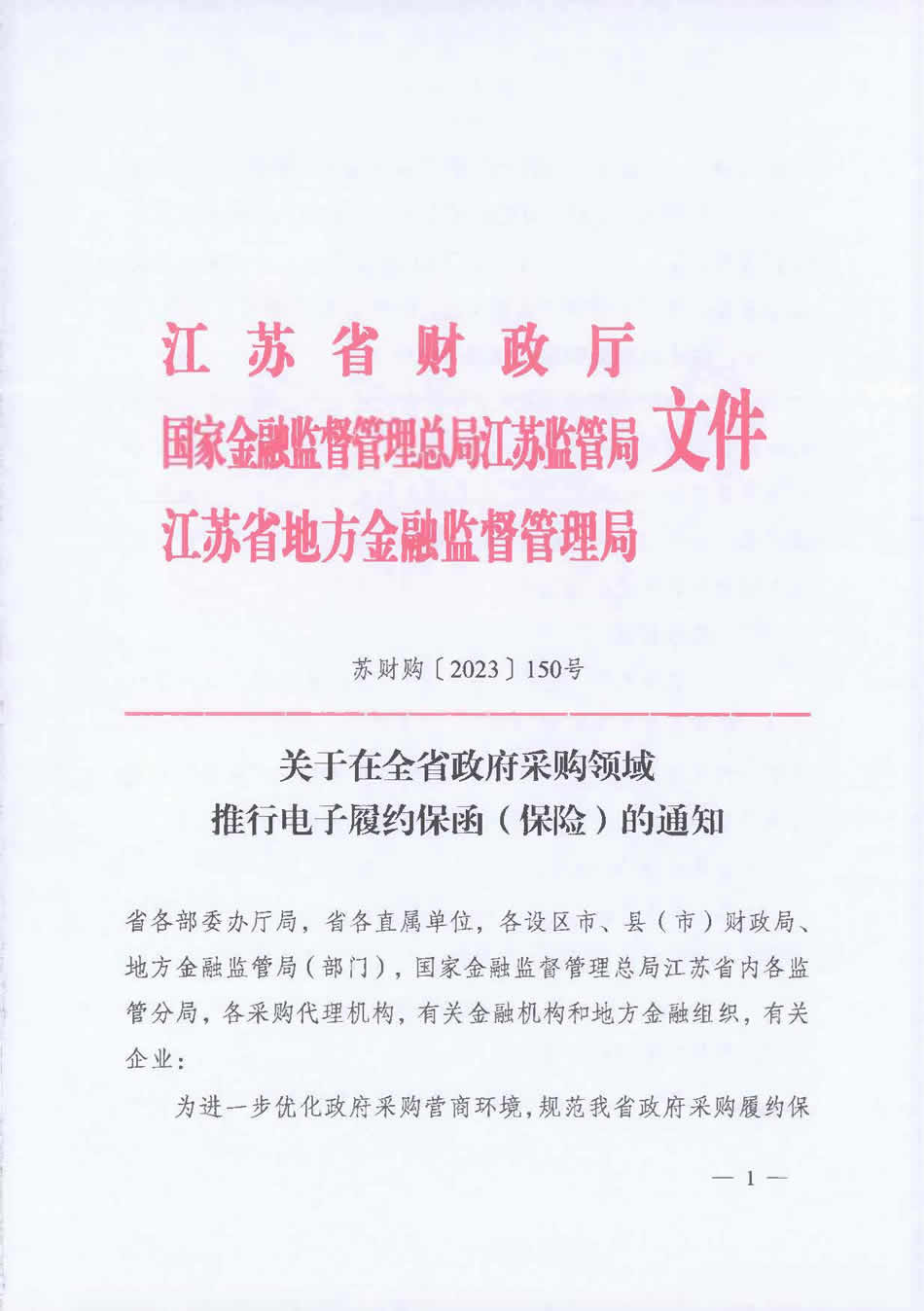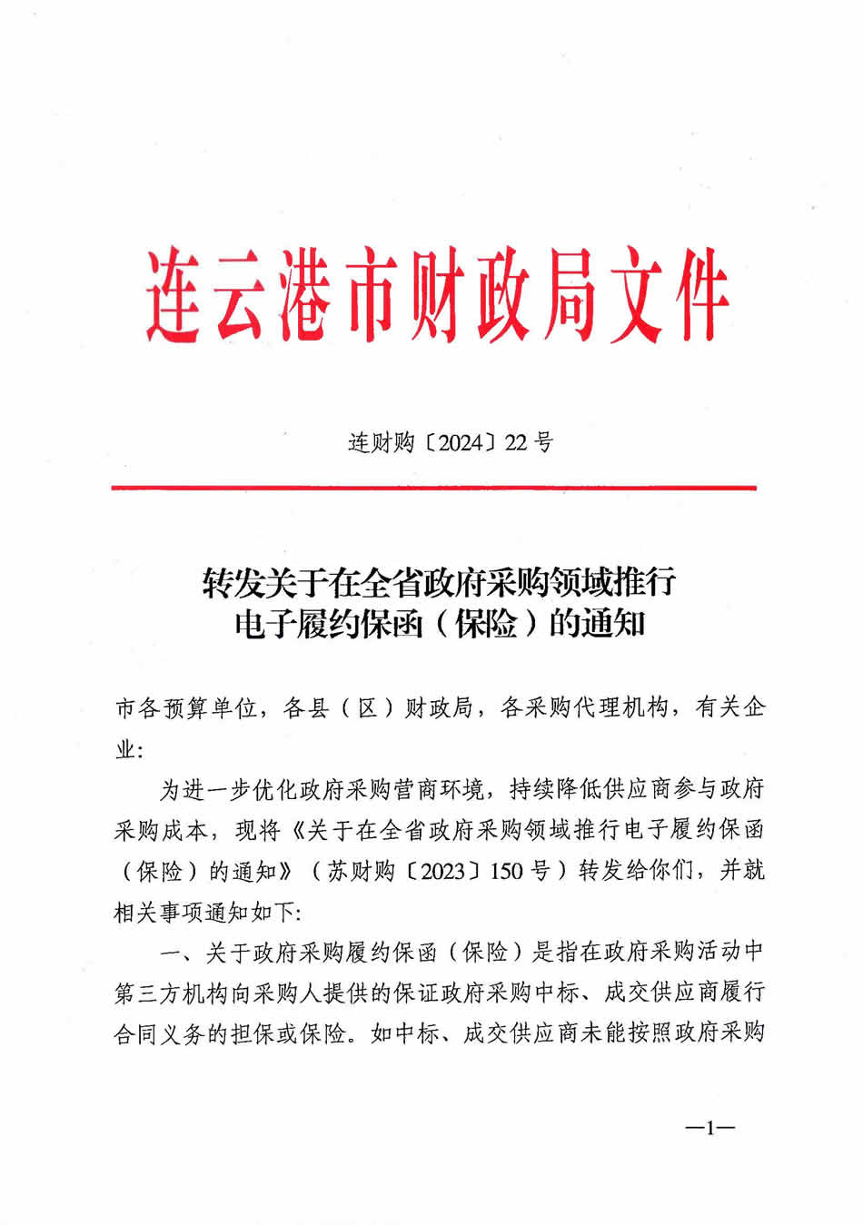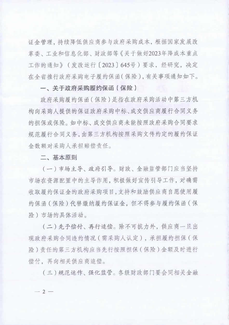 转发关于在全省政府采购领域推行电子履约保函(保险)的通知