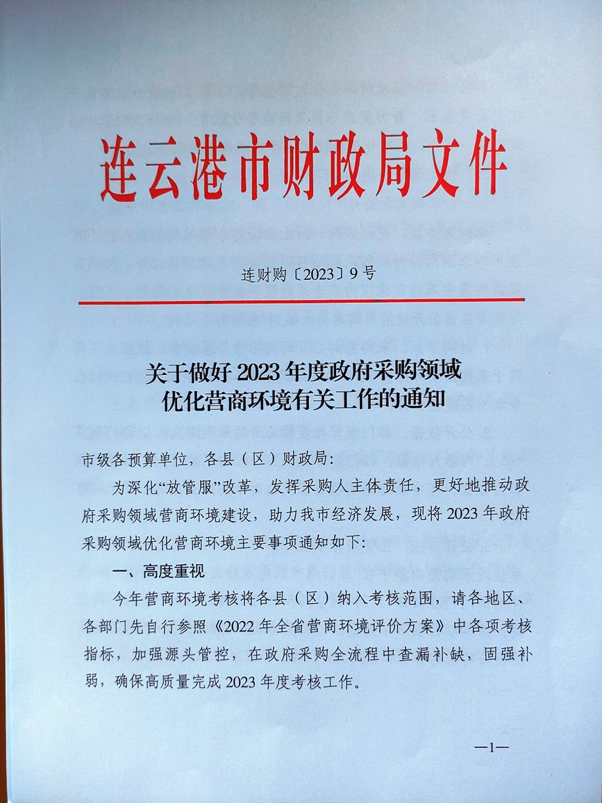 关于做好2023年度政府采购领域优化营商环境有关工作的通知(连财购〔2023〕9号)