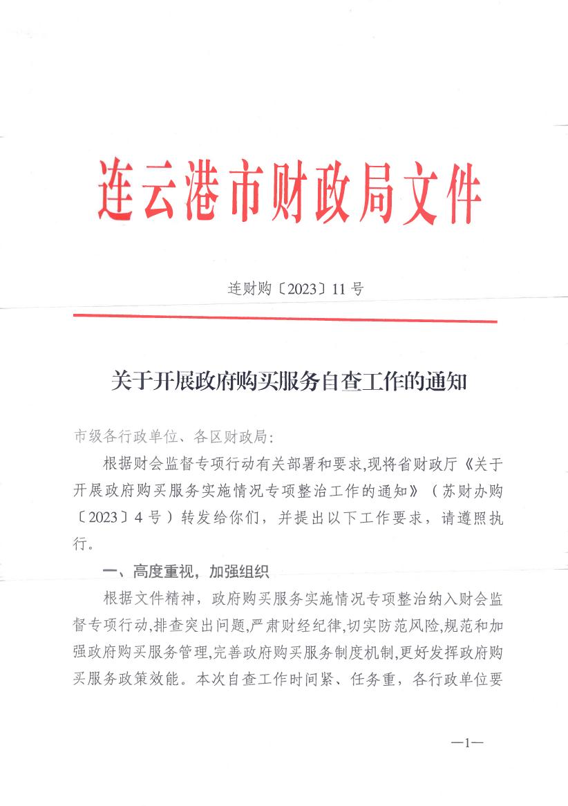 关于开展政府购买服务自查工作的通知(连财购〔2023〕11号)