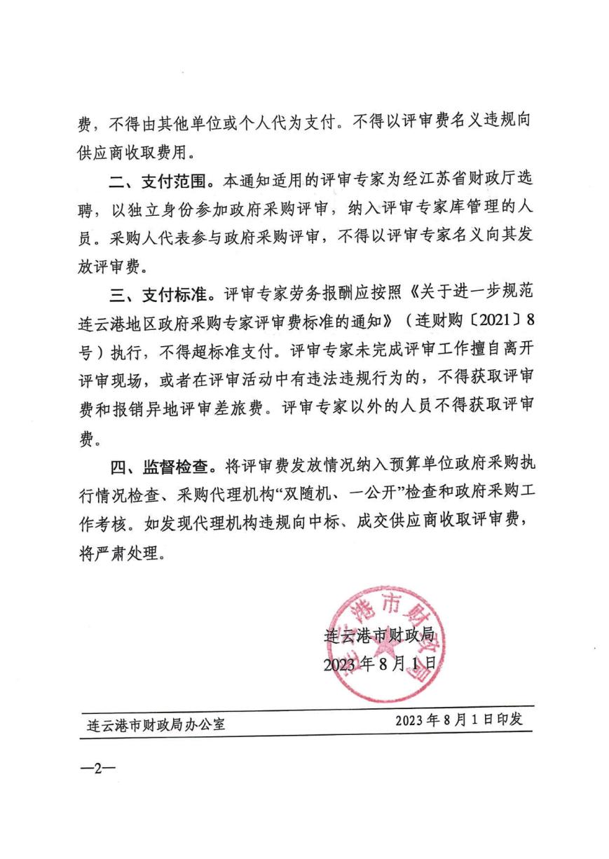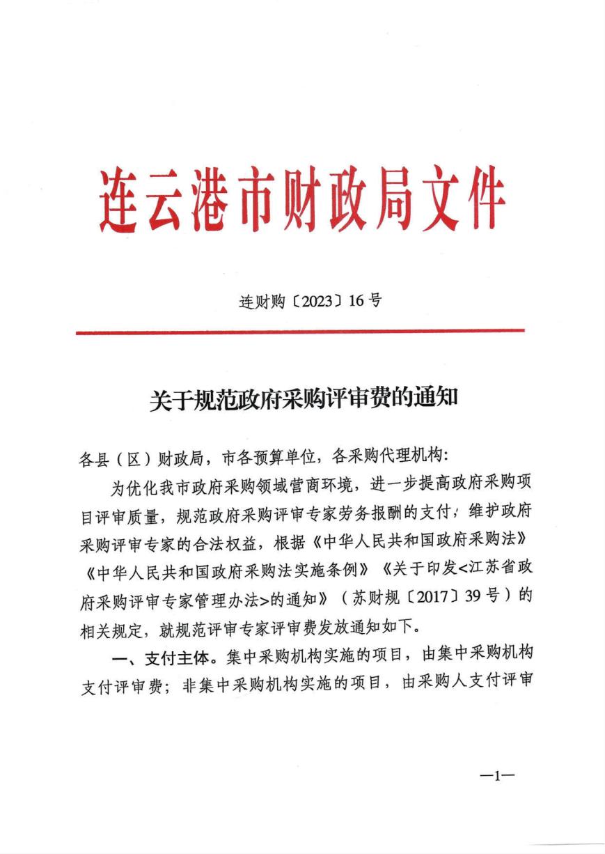 关于规范政府采购评审费的通知(连财购〔2023〕16号)