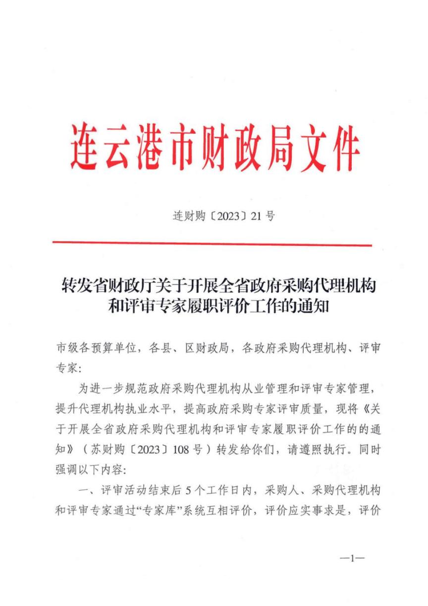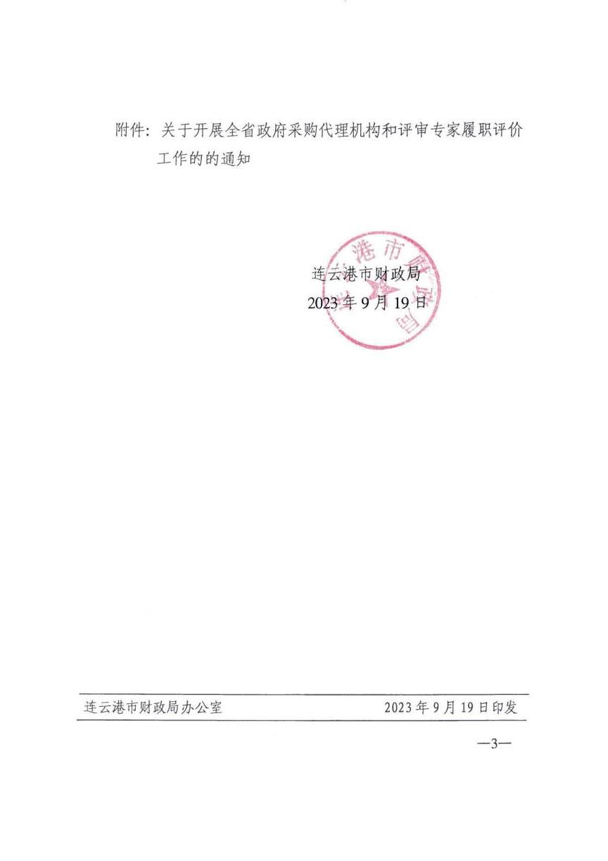 转发省财政厅关于开展全省政府采购代理机构和评审专家履职评价工作的通知(连财购〔2023〕21号)