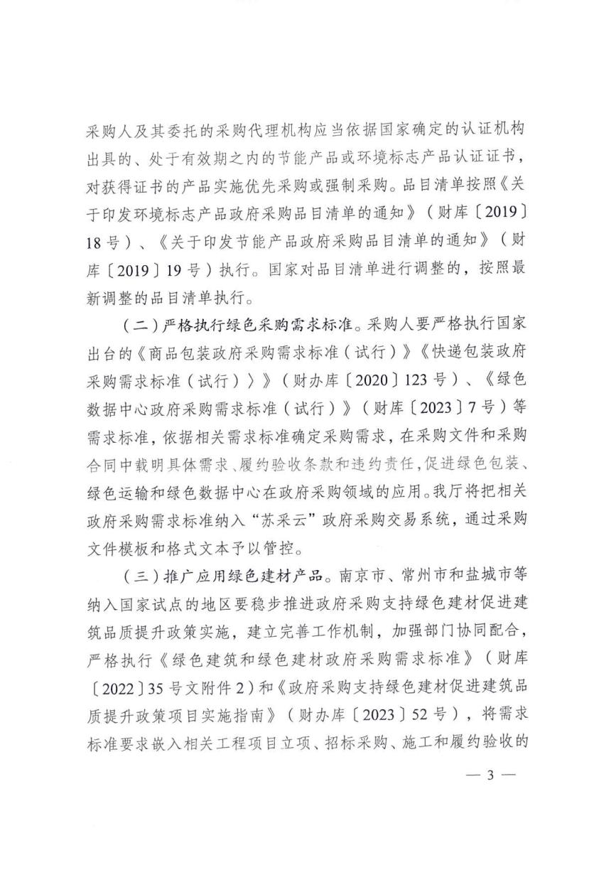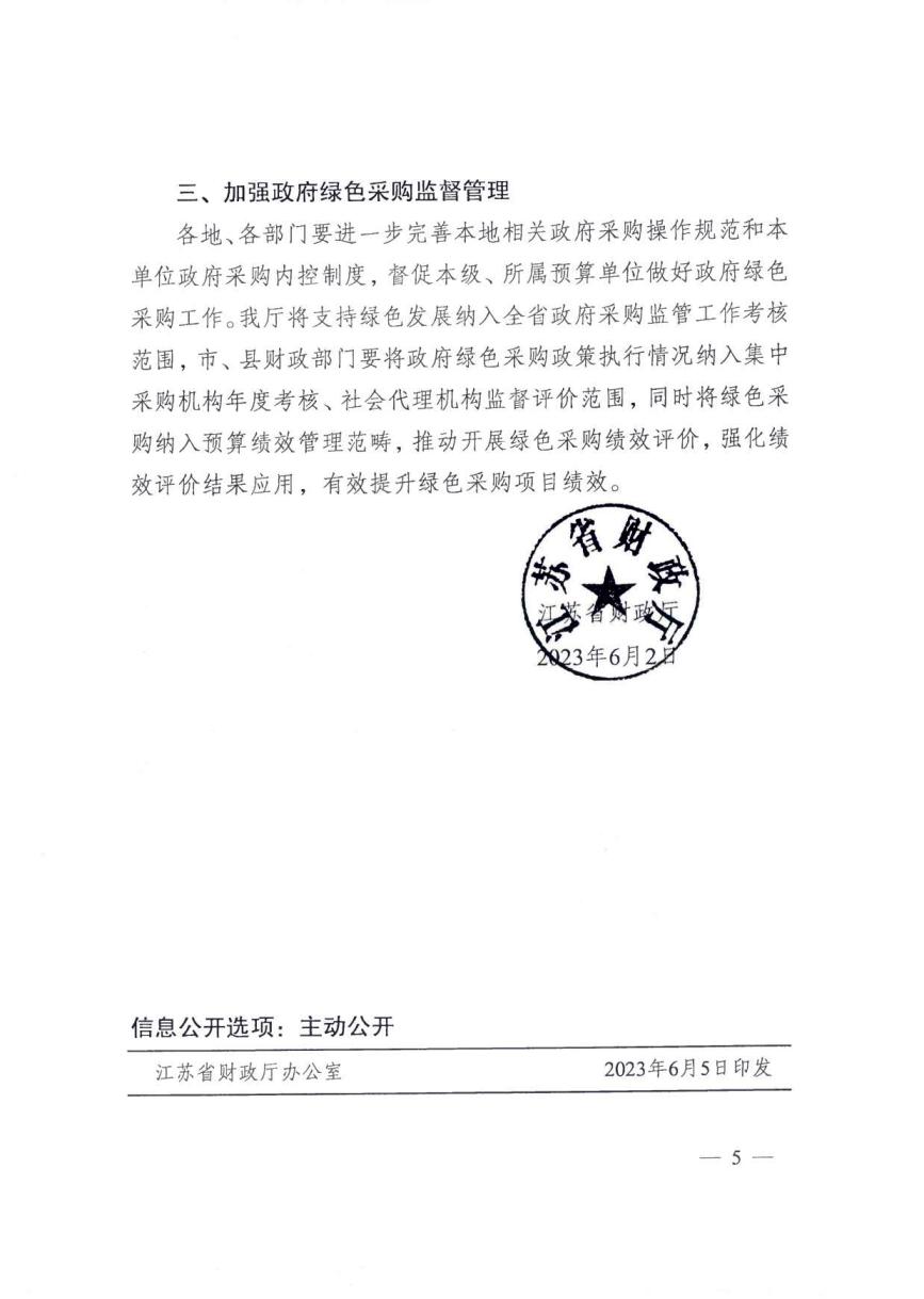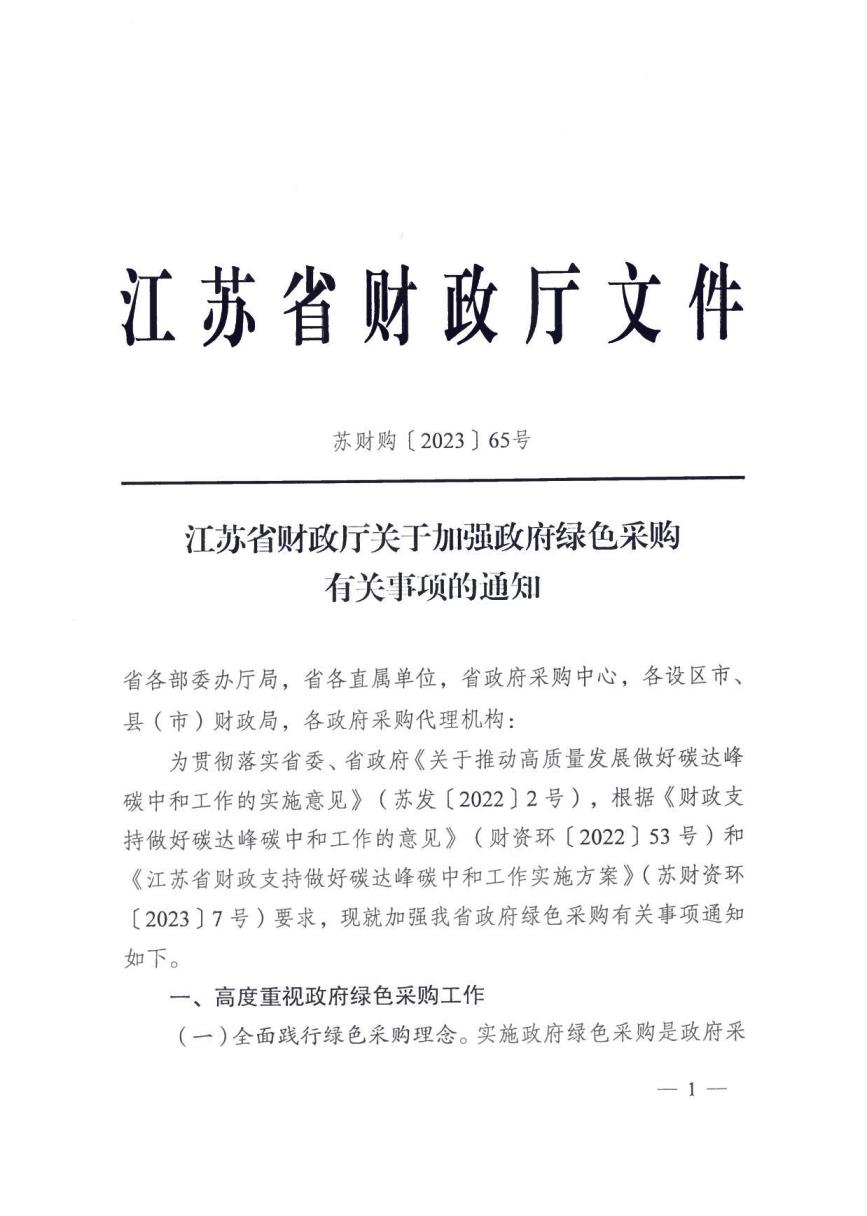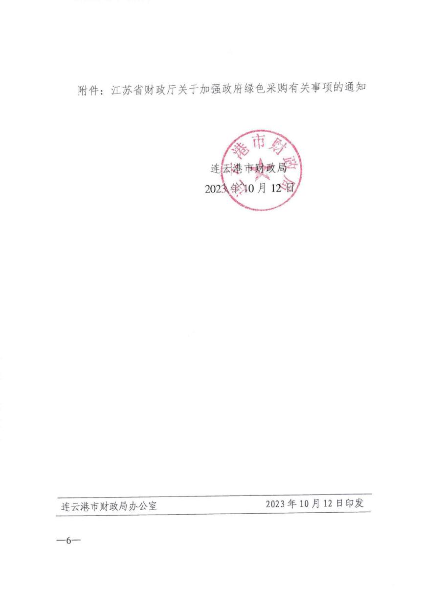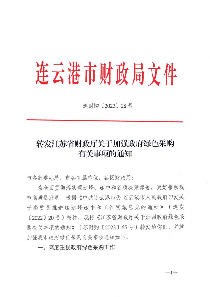转发江苏省财政厅关于加强政府绿色采购有关事项的通知(连财购〔2023〕28号)