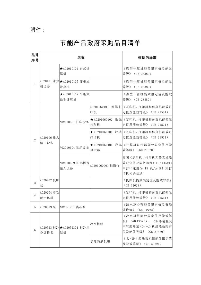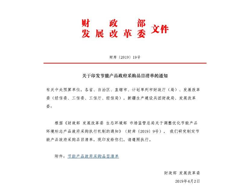 关于印发节能产品政府采购品目清单的通知(财库〔2019〕19号)