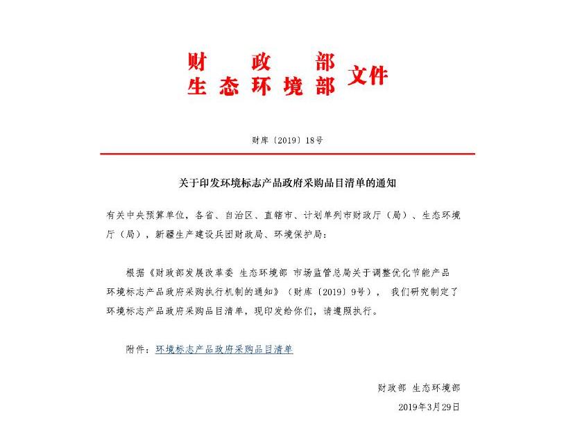 关于印发环境标志产品政府采购品目清单的通知(财库〔2019〕18号)
