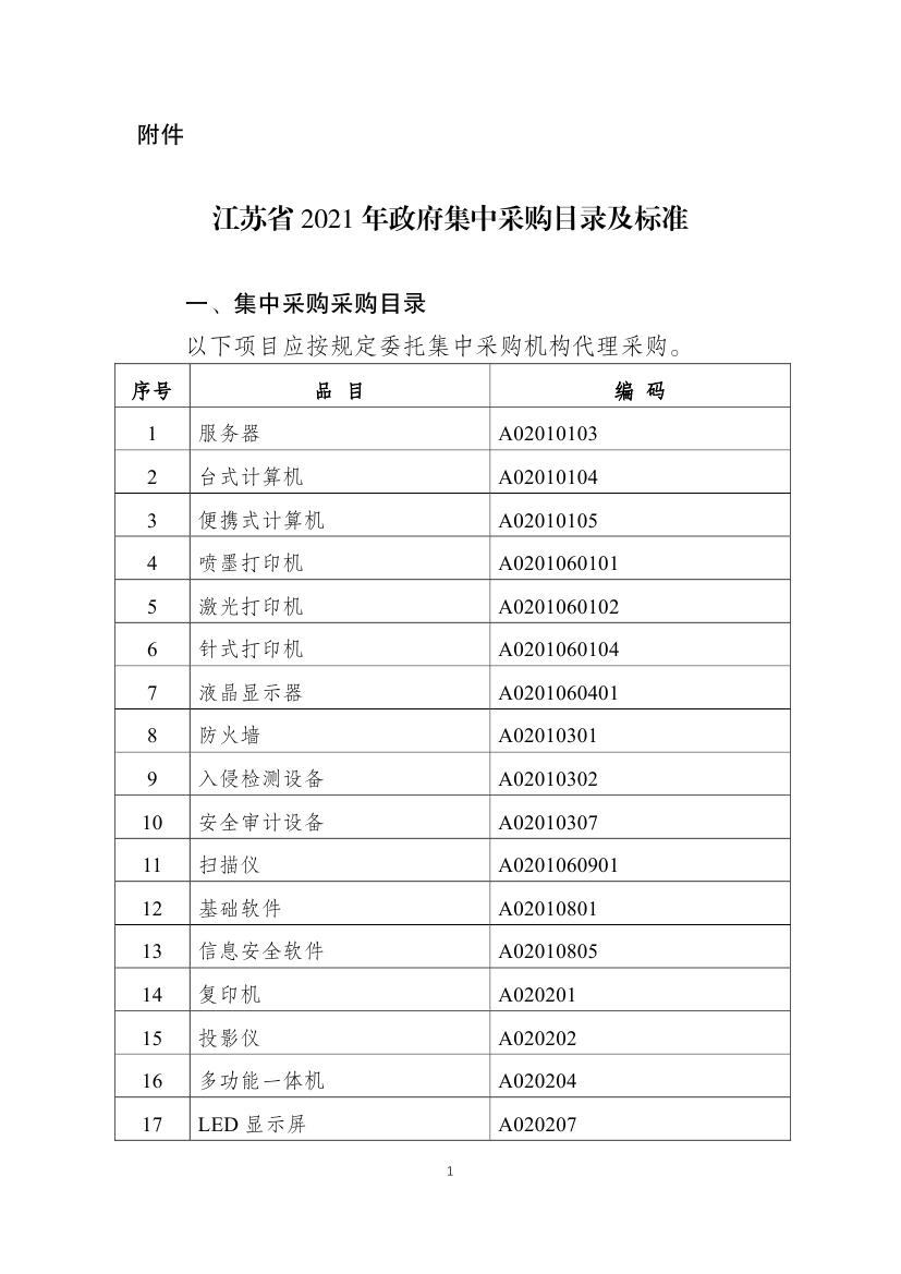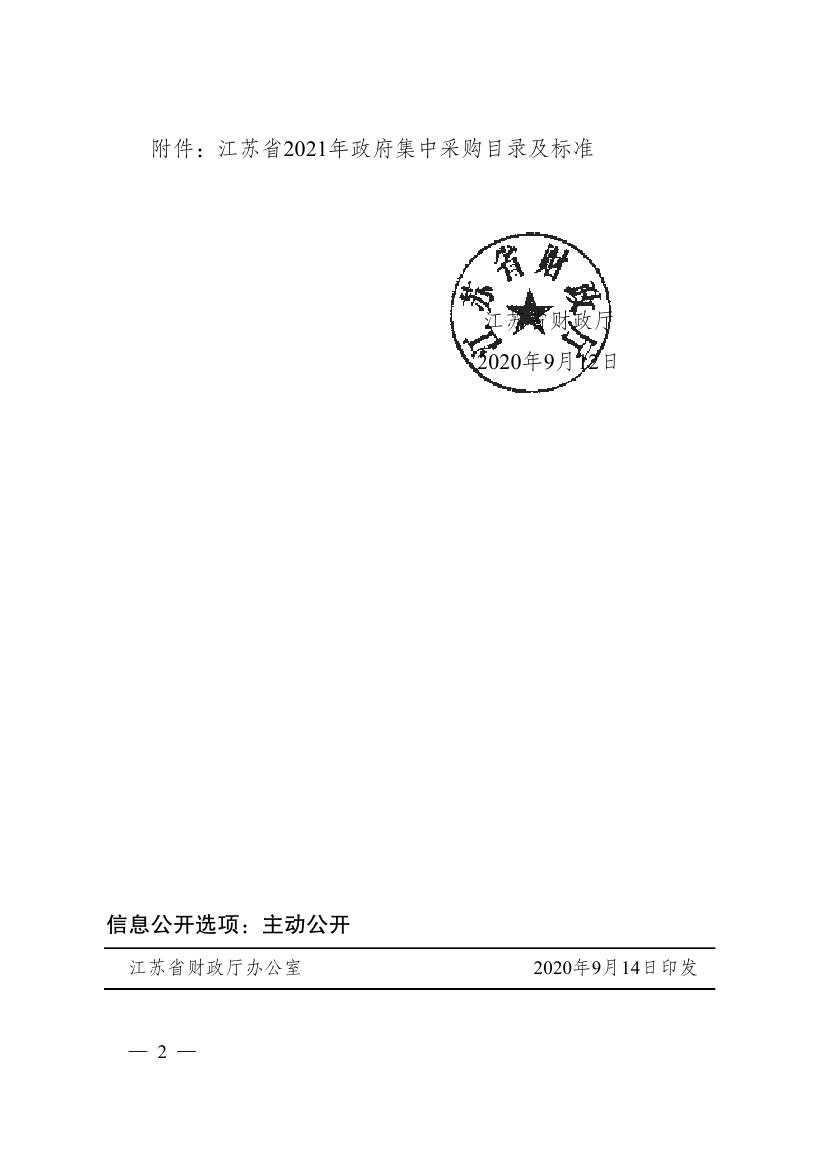 关于印发江苏省2021年政府集中采购目录及标准的通知(苏财购〔2020〕66号)