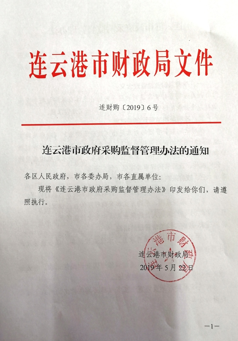 连云港市政府采购监督管理办法的通知(连财购〔2019〕6号)