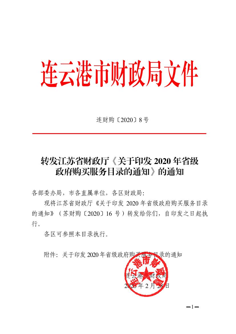转发江苏省财政厅《关于印发2020年省级政府购买服务目录的通知》的通知(连财购〔2020〕8号)