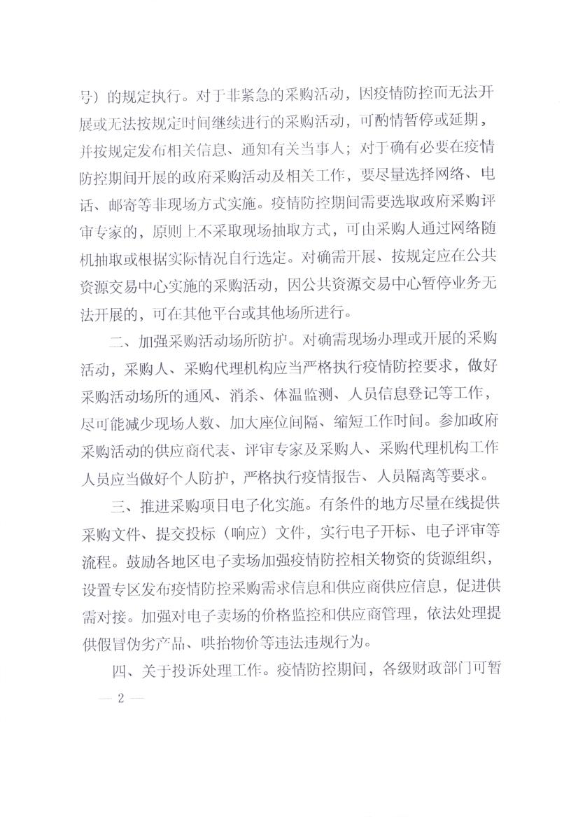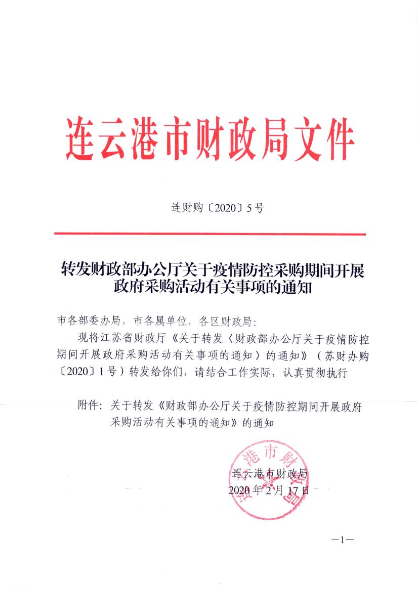 转发财政部办公厅关于疫情防控采购期间开展政府采购活动有关事项的通知(连财购〔2020〕5号)