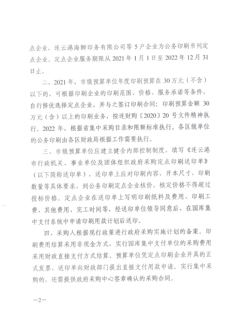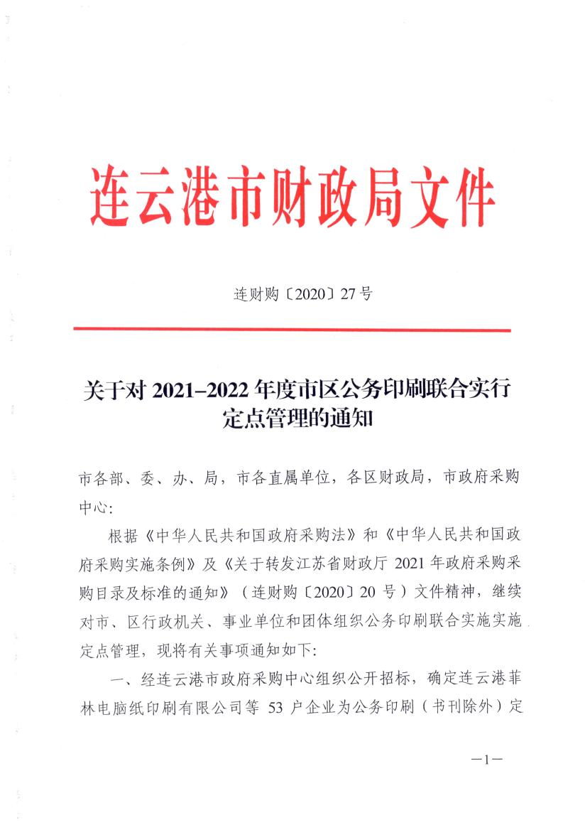 关于对2021-2022年度市区公务印刷联合实行定点管理的通知(连财购〔2020〕27号 )