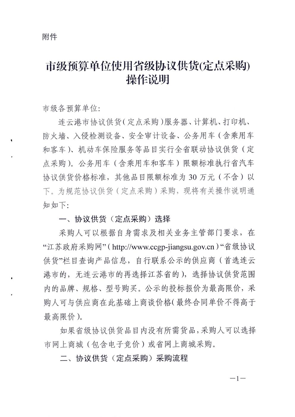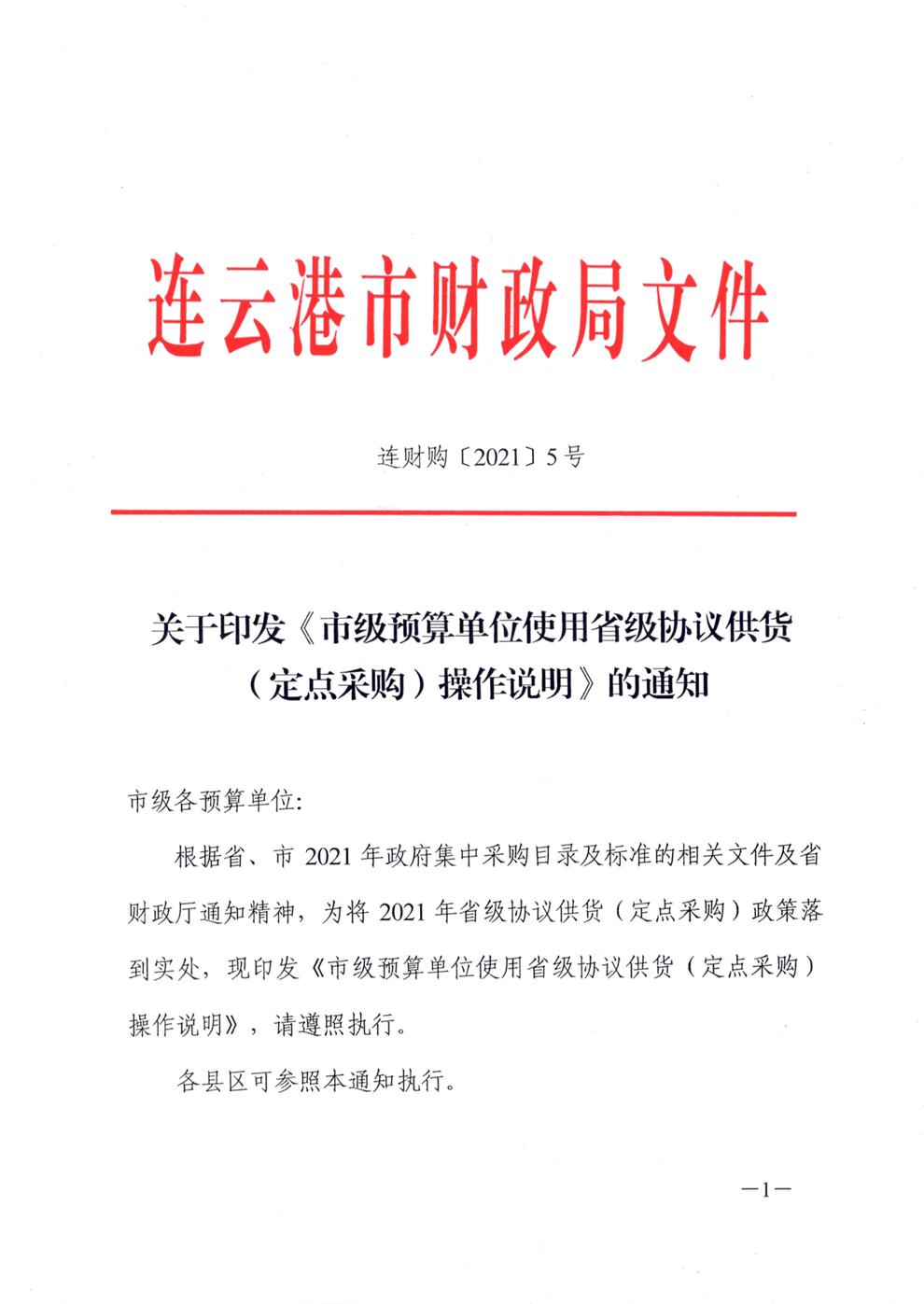 关于印发《市级预算单位使用省级协议供货(定点采购)操作说明》的通知(连财购〔2021〕5号)
