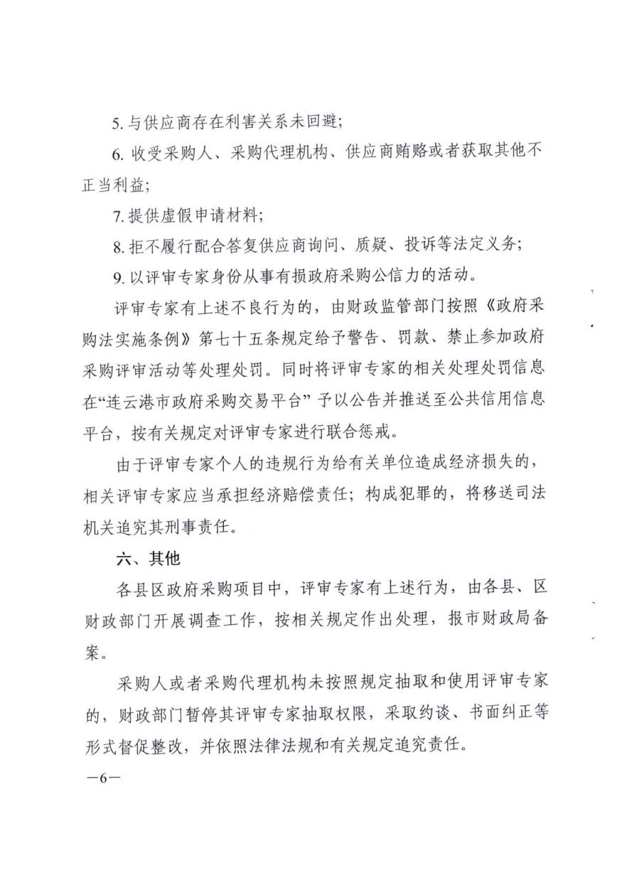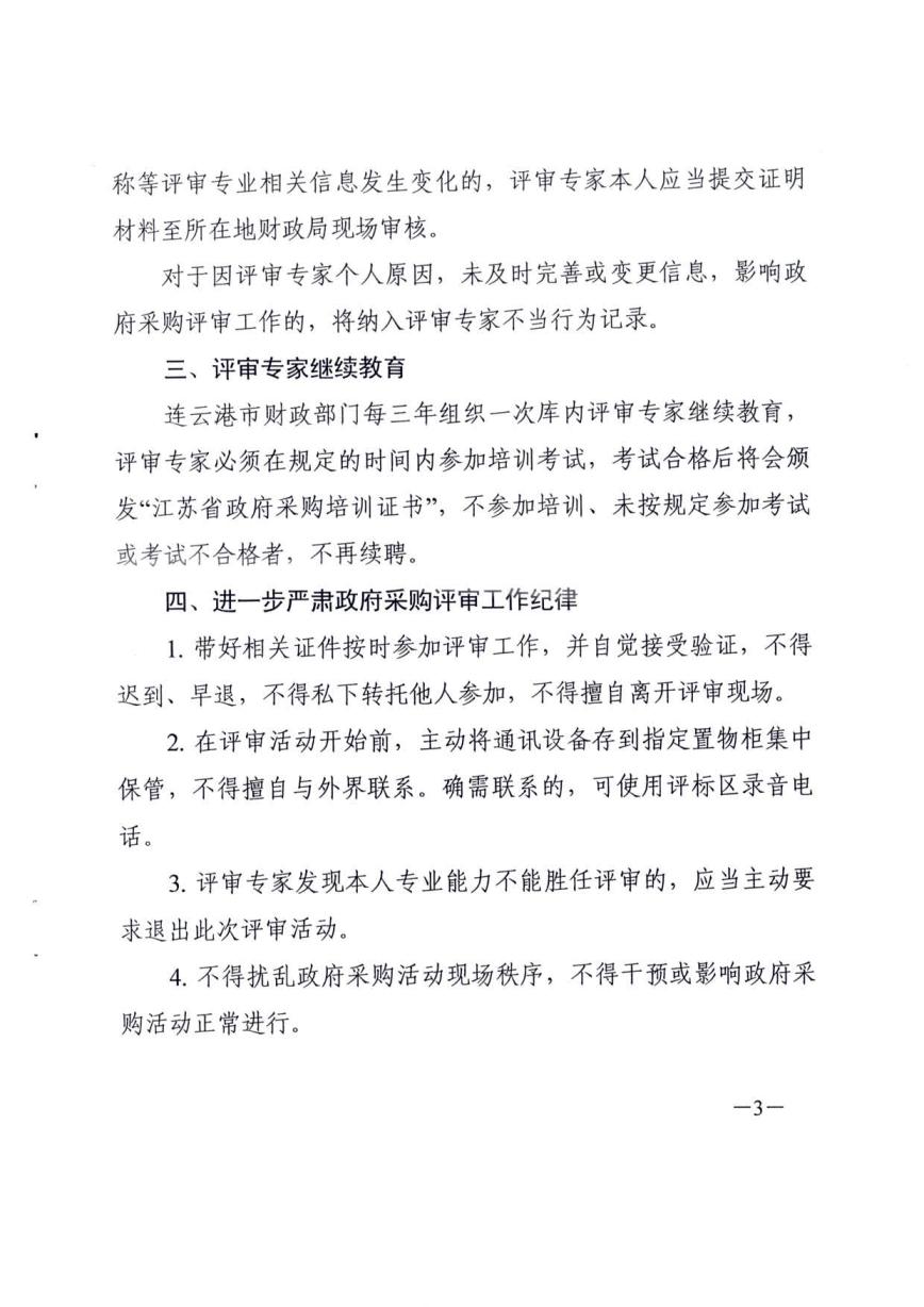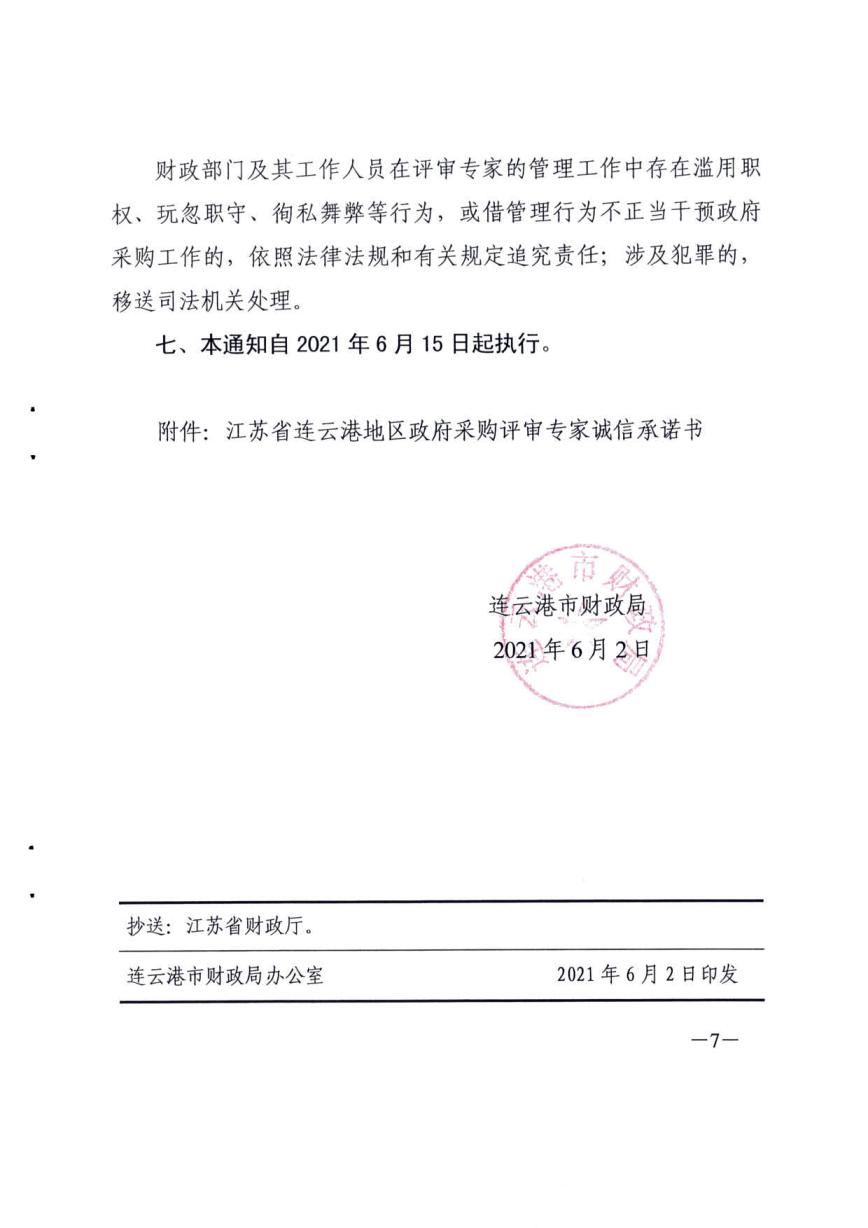 关于进一步加强连云港地区政府采购评审专家管理的通知(连财购〔2021〕9号)