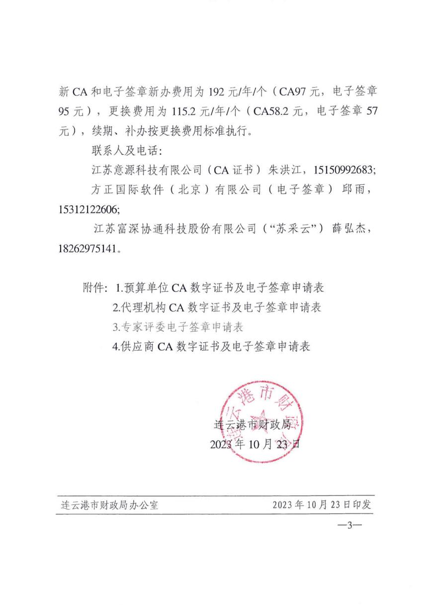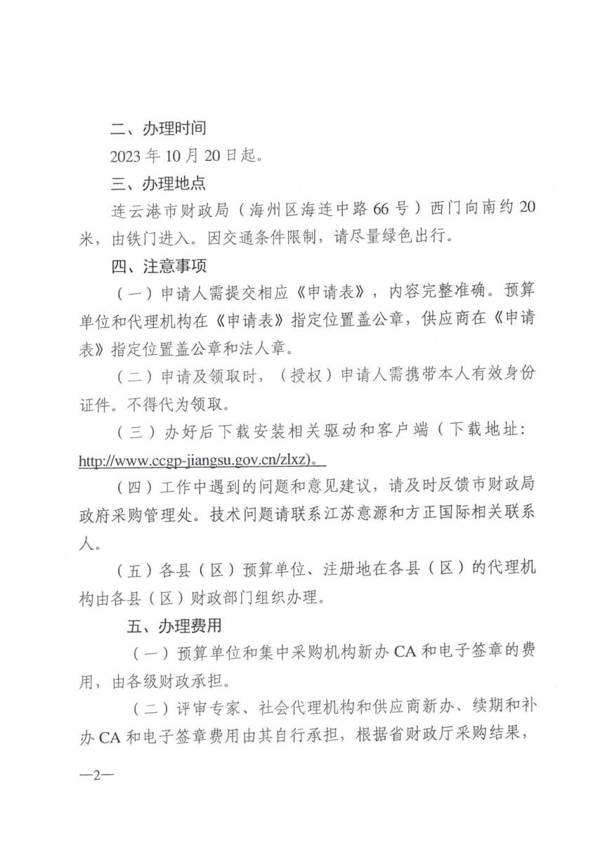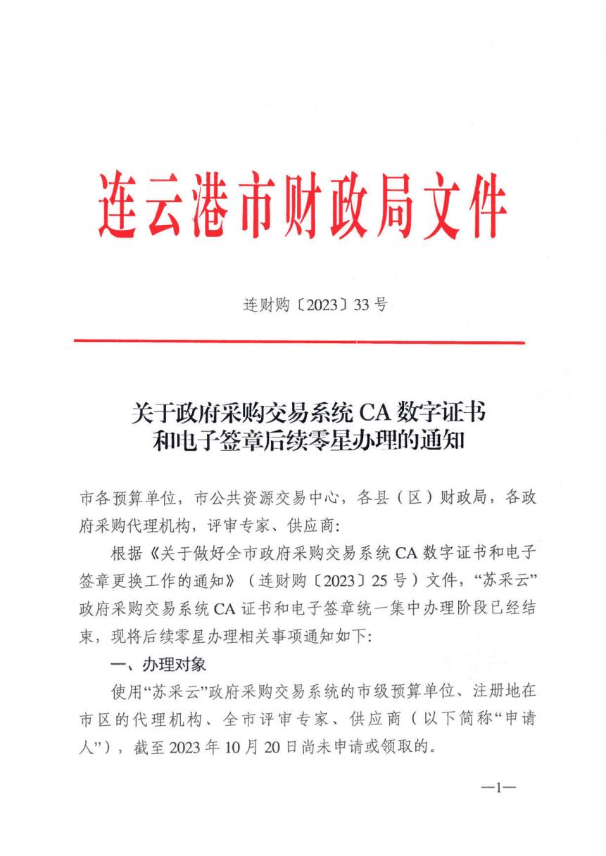 关于政府采购交易系统CA数字证书和电子签章后续零星办理的通知(连财购〔2023〕33号)