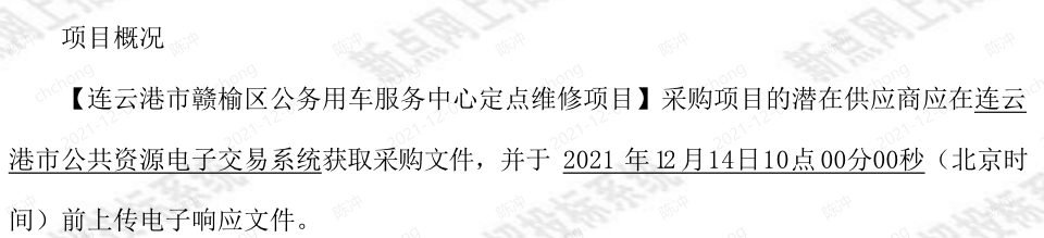 项目名称:连云港市赣榆区公务用车服务中心定点维修项目