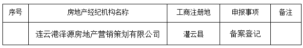 连云港市房地产经纪机构备案登记审核结果公告(2019年第1批)