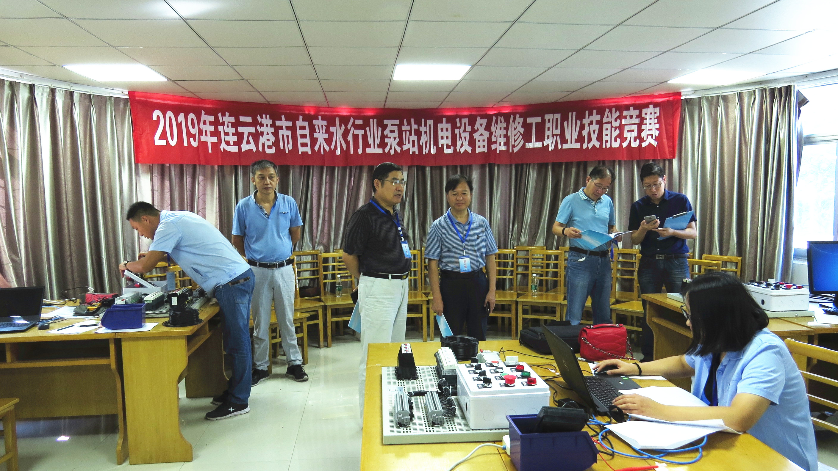 近日,由市住房和城乡建设局、市总工会、市人力资源和社会保障局联合主办的2019年连云港市自来水行业泵站机电设备维修工职业技能竞赛在第三水厂顺利开赛。来自全市自来水行业的5支代表队、24名选手参加了竞赛,前三名选手被市自来水公司摘取。市总工会陈健副主席和市住建局宋和景副局长及市人社局职能负责同志到场巡考。