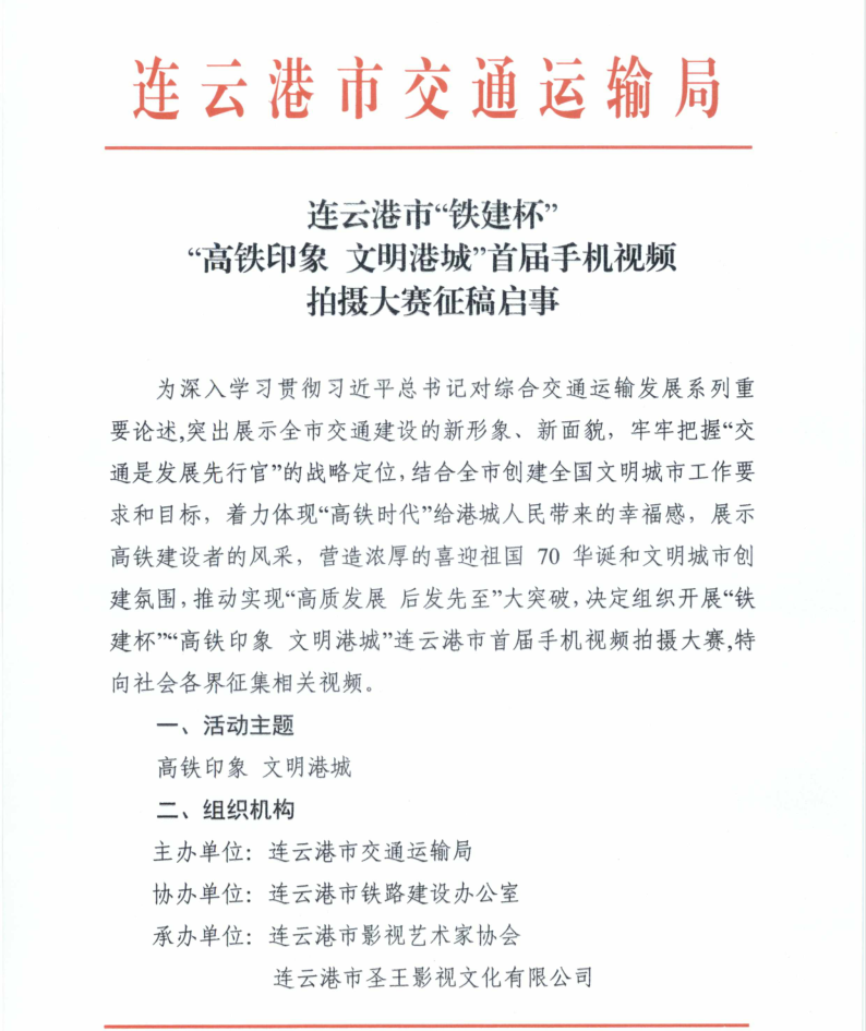 连云港市“铁建杯”“高铁印象 文明港城”首届手机视频拍摄大赛征稿启事