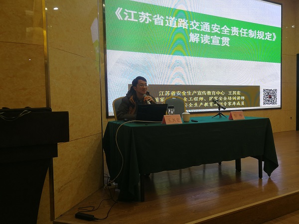 此次培训班邀请安全生产管理方面的有关专家,主要从安全生产标准化体系建设、风险隐患辨识与排查、交通运输行业以案说法,以及企业安全生产费用提取使用政策和《江苏省道路交通安全责任制规定》方面进行深刻解读和阐述,并在每次培训课后通过试卷的形式对参训学员的培训效果进行了测试。