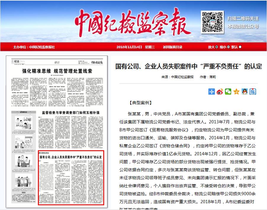 就本案而言,《贸易物流服务协议》中明确约定了物流公司应当提供仓储服务,客观上物流公司也安排了人员驻场监管,而在双方发现部分货物存在被强行提货、抢货的情况下,物流公司的正常操作应当是采取有效措施加强监管、保障货物安全,避免经济风险。事实上,物流公司只要采取报警、转仓等措施,就可以避免公司遭受的损失。在甲公司多次要求物流公司对货物履行监管义务的情况下,张某某草率决定放弃监管,在货物被盗抢时不制止、不报警、不转仓,最终导致物流公司9000余万元的重大损失。作为一名长期从事企业经营管理、工作经验丰富的企业领导人员,张某某应当能够预见到其行为可能给企业带来重大损失的风险,但却偏听偏信、一意孤行,在货物被盗抢时没有采取起码的避险措施,几乎到了麻木的地步,使损失由风险变成必然,其行为应当认定达到“严重”程度,并以国有公司、企业人员失职罪追究其刑事责任。(蒋莉)