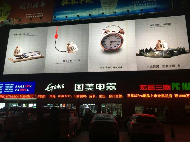连云港市将全面从严治党工作与公益广告有机结合,以廉洁从政、艰苦奋斗、服务群众、警钟长鸣为主题,制作反腐倡廉公益广告,并将优秀作品全部投放到市区和各县区公共交通枢纽位置。在使党员干部受到教育的同时,也让广大市民也置身于浓浓的廉洁文化氛围之中。