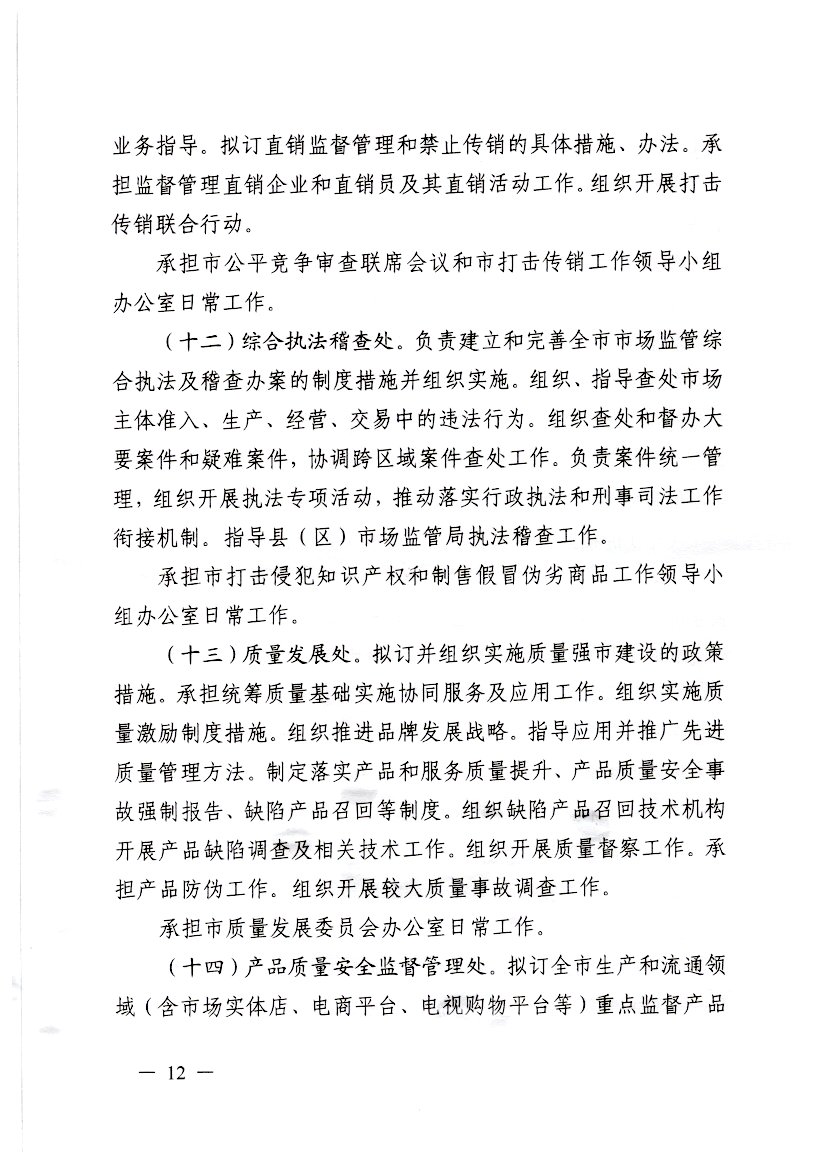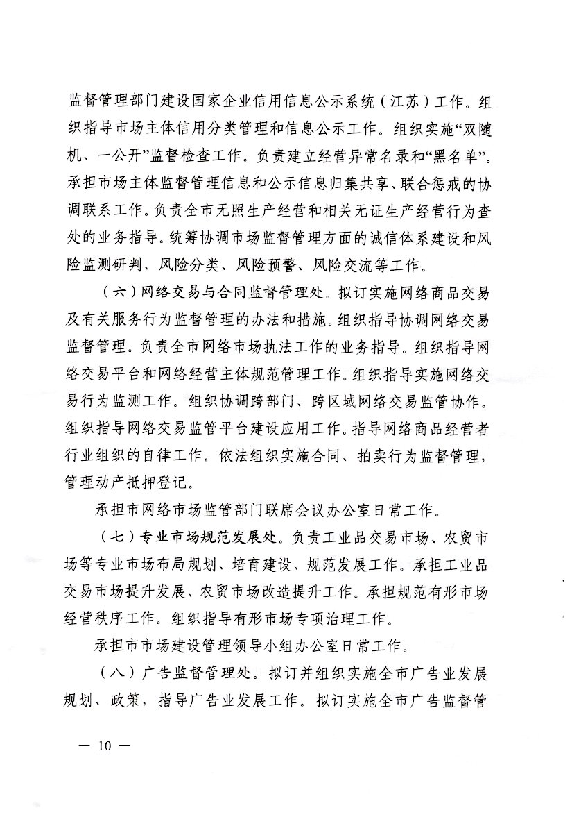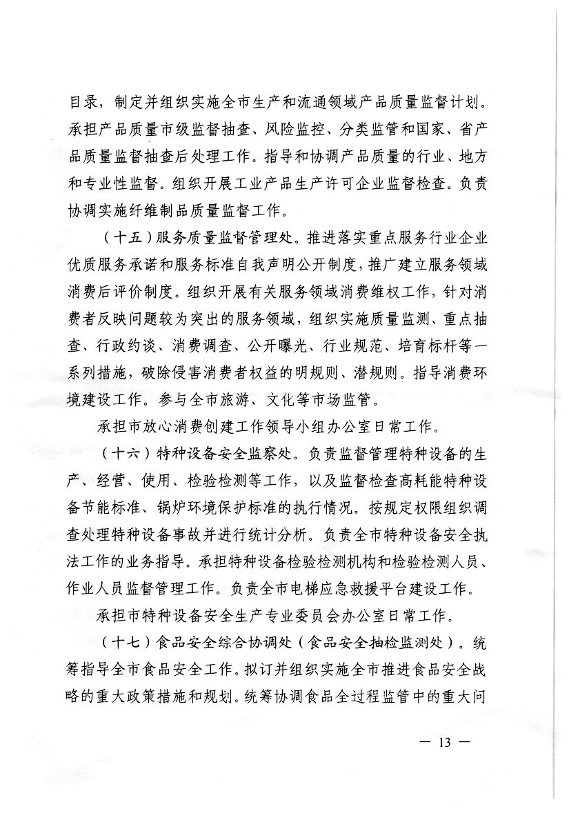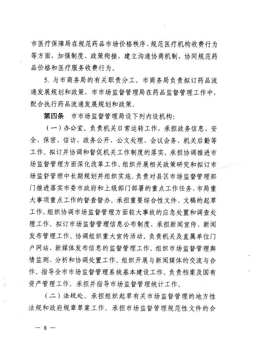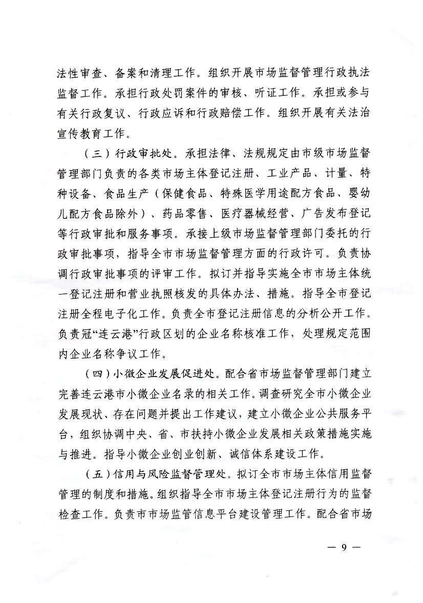 市委办公室 市政府办公室 关于印发《连云港市市场监督管理局职能配置、内设机构和人员编制规定》的通知