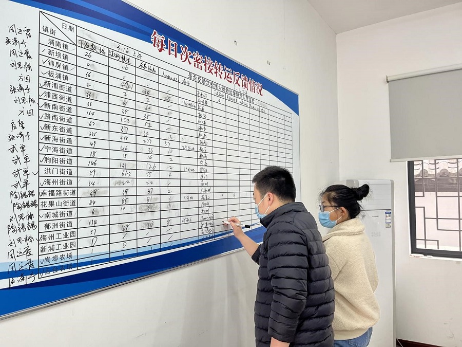 3月13日,区委再次号召青年干部投入疫情联防联控指挥部工作,张磊又一次闻令而动,勇敢向前。指挥部是疫情防控的神经中枢,事关疫情能否迅速扑灭,张磊被安排到次密接转运信息组担任组长,通过分析处理一条条流调信息,全力守护好人民群众的生命安全。