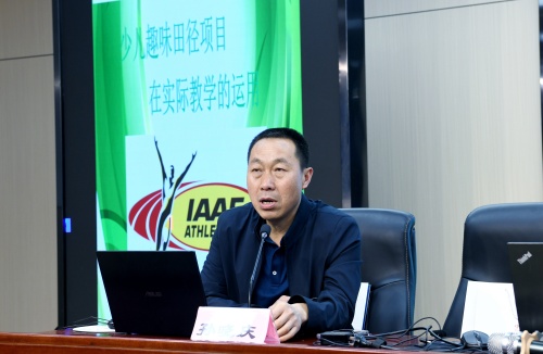 赣榆区体卫艺科科长秦明主持了培训仪式,赣榆实验小学体卫艺主任吴军致欢迎辞,区教研员车树全对培训提出要求。培训专家组成员江苏中飞星梦区域经理吴飞翔、正高级教师、特级教师、镇江市京口区体育教研员孙晓庆、江苏省田协少儿趣味田径资深教练员李雪松为与会人员进行了为期一天的理论实操专业培训。