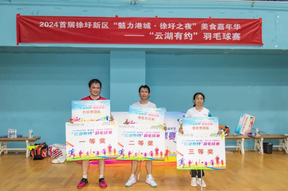 “云湖有约”羽毛球比赛设置为团体赛,分为男双、混双、男单,共7支队伍参赛。赛场上,队员们努力拼搏,将自己的技术发挥的淋漓尽致,不断引来观众阵阵尖叫。经过一天的激烈角逐,最终方洋集团、盛虹集团、港控集团代表队分别摘得冠亚季军。整个比赛,大家欢声笑语,充满活力,展现了员工积极向上的精神面貌,加强了公司的凝聚力。